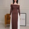 فستان طويل برغندي بتصميم أنيق ولمسة أنثوية راقية