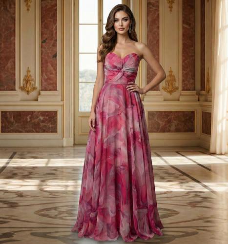 فستان طويل بنقشة زهور متعددة الألوان بإطلالة أنثوية راقية