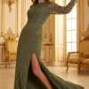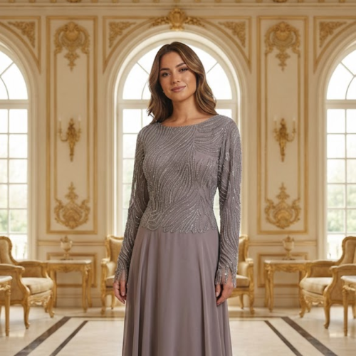 فستان سهرة طويل فخم – عنابي بتصميم مميز لطلة ملكية