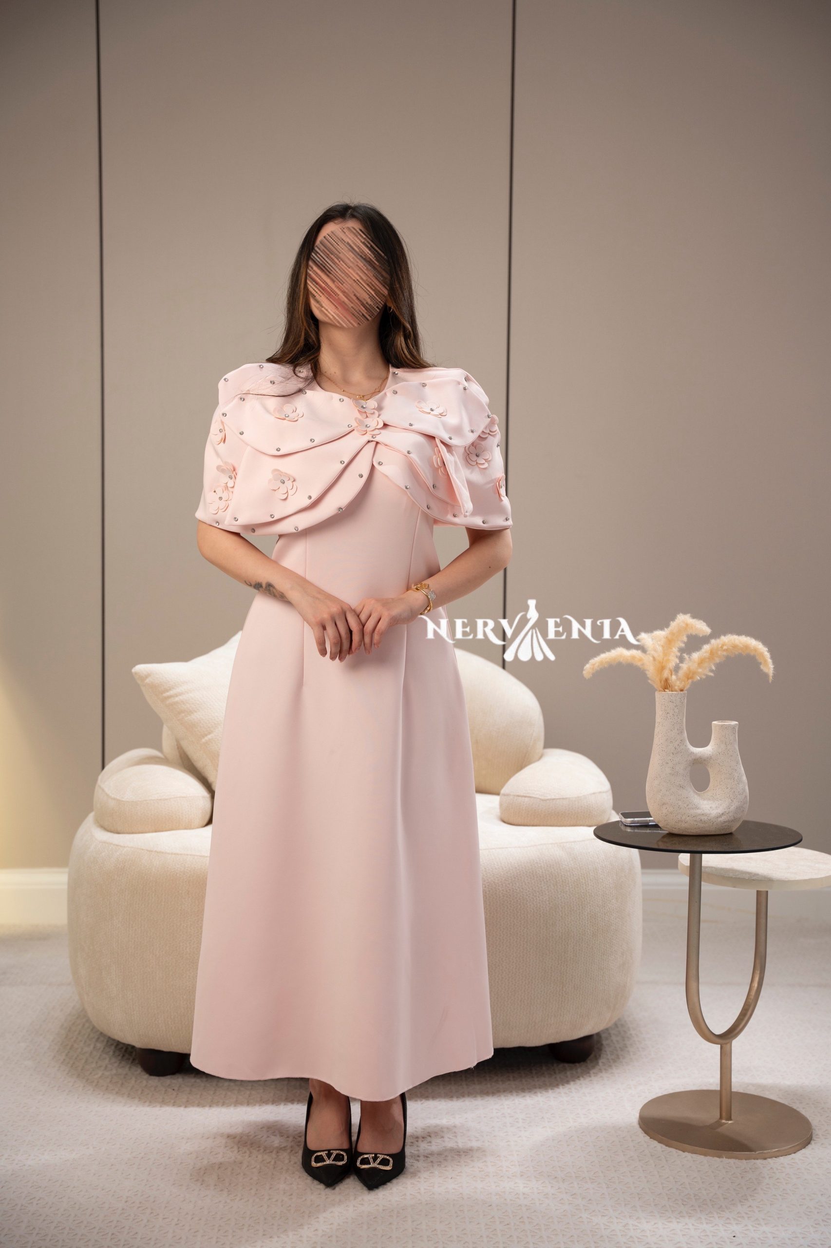 فستان ترتر لامع مع كاب شيفون – فستان ترتر لامع مع كاب شيفون