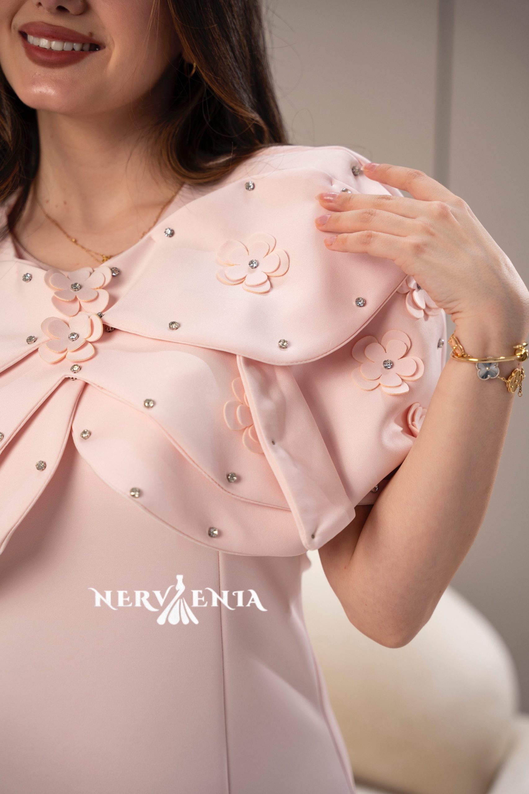 فستان درابيه مزموم ملكي ورقبة مرصعة – فستان درابيه مزموم ملكي ورقبة مرصعة