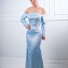 فستان أزرق ملكي طويل بإطلالة أنثوية فاخرة