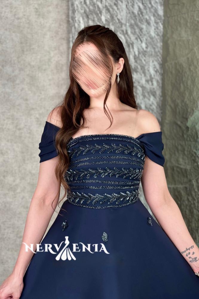 فستان سيرافينيا جوخ مخملي مع التل – فستان سيرافينيا جوخ مخملي مع التل