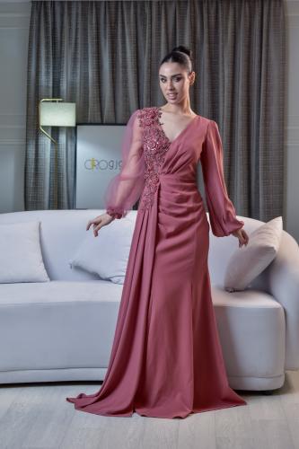 فستان وردي بتطريز جانبي ولمسة أنثوية راقية