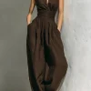 Stand Collar Sleeveless Wide Leg Jumpsuit