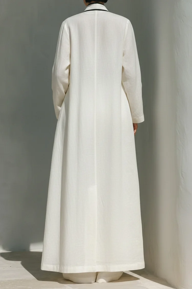 فيفيتش – طقم عباية بدون أكمام من الكتان مكون من قطعتين – أبيض [طلب مسبق]