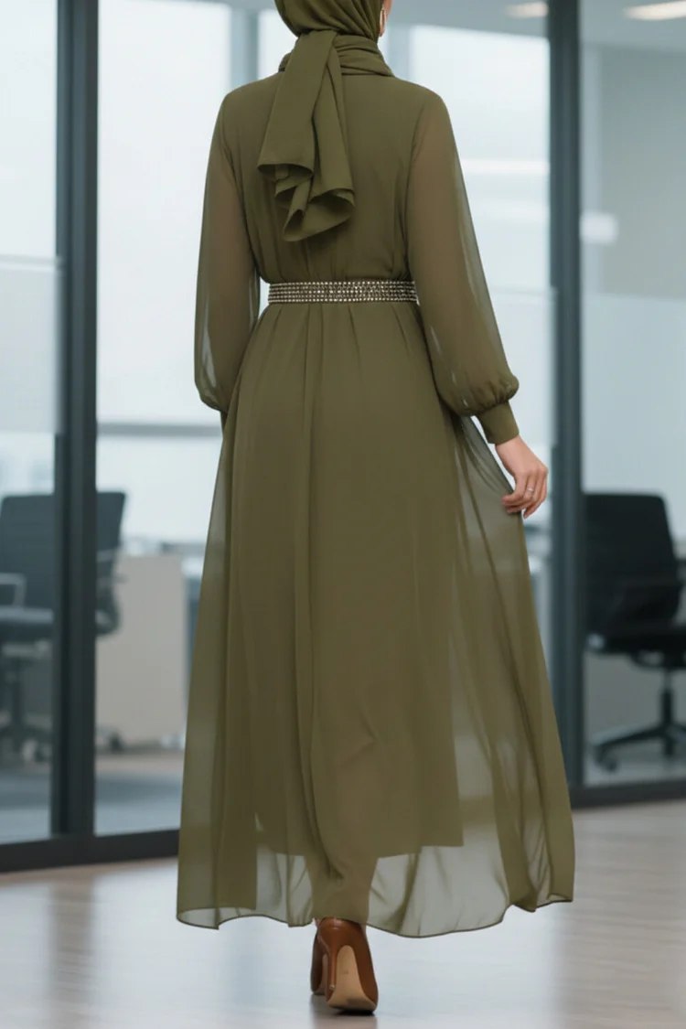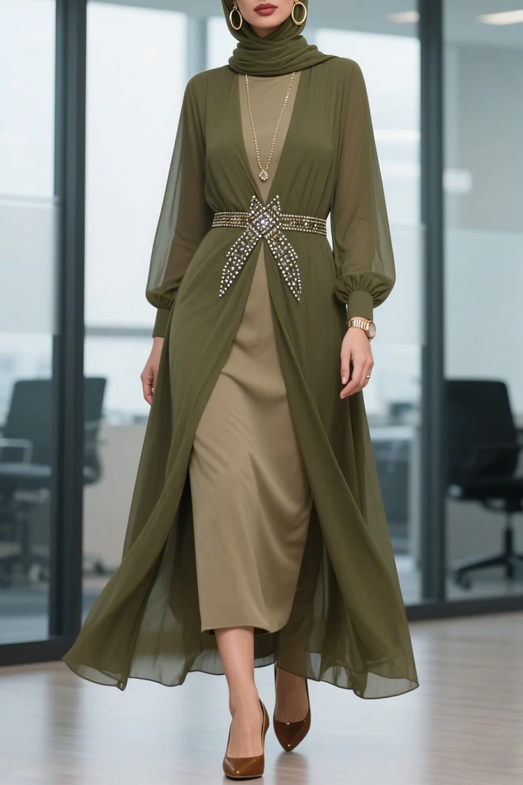 فيفيتش – طقم عباية ماكسي من الشيفون شبه الشفاف بأكمام طويلة مكون من قطعتين [طلب مسبق]