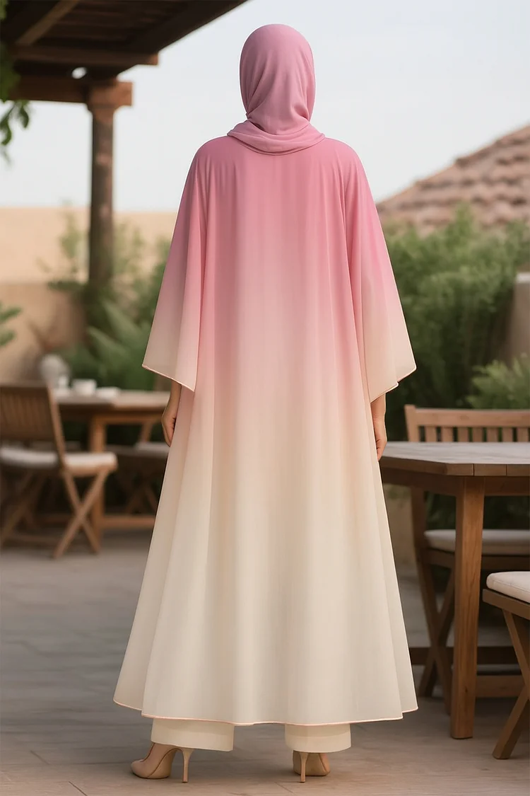 فيفيتش – طقم عباية مكون من 3 قطع – لون وردي، بلوزة وبنطال بطبعة زهور متدرجة الألوان