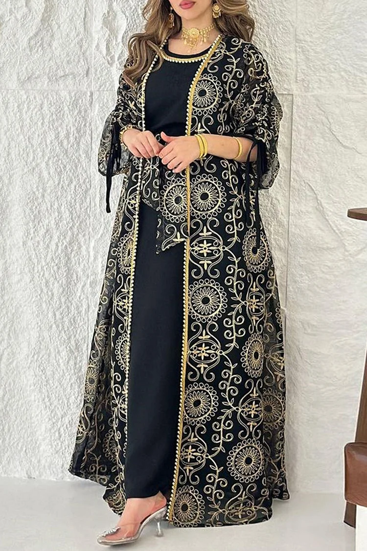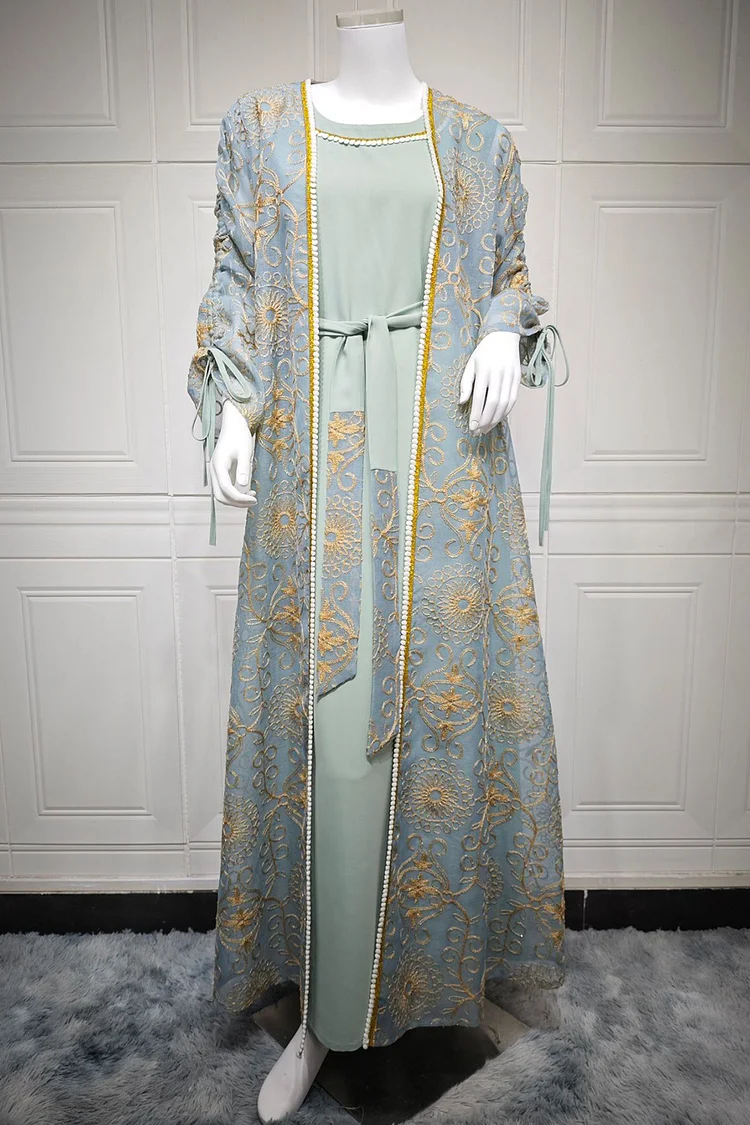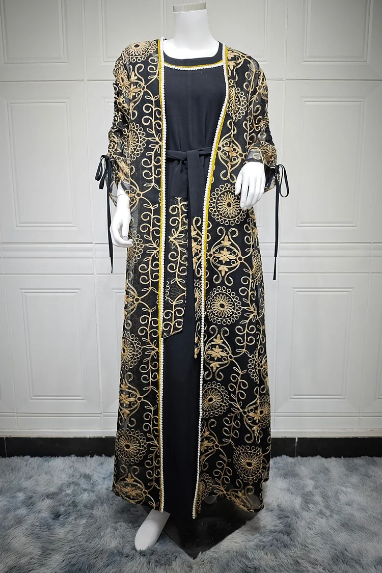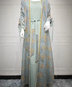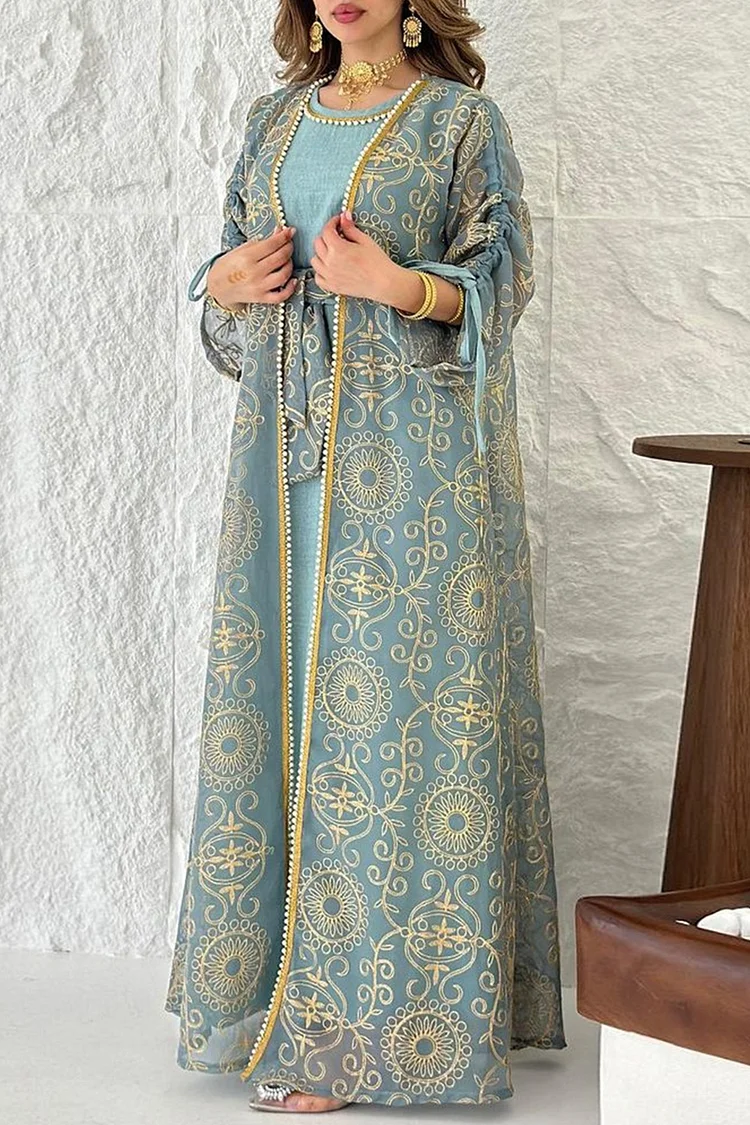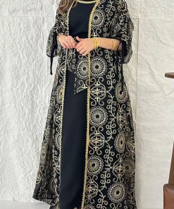 فيفيتش – طقم فستان ماكسي بدون أكمام مطرز بتطريز قبلي، بأكمام برباط، قطعتين