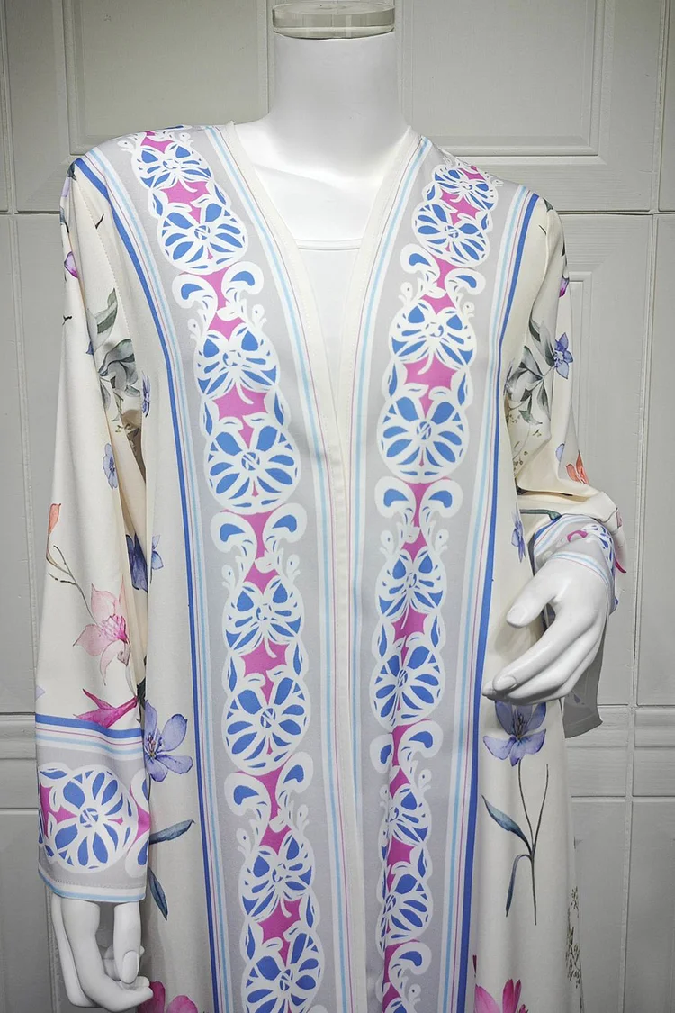 Be the first to review “فيفيتش – عباية طويلة بأكمام طويلة مفتوحة من الأمام مزينة بطبعة زهور، مع كارديجان طويل وحجاب للرأس”