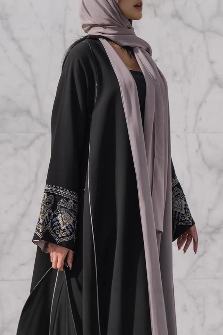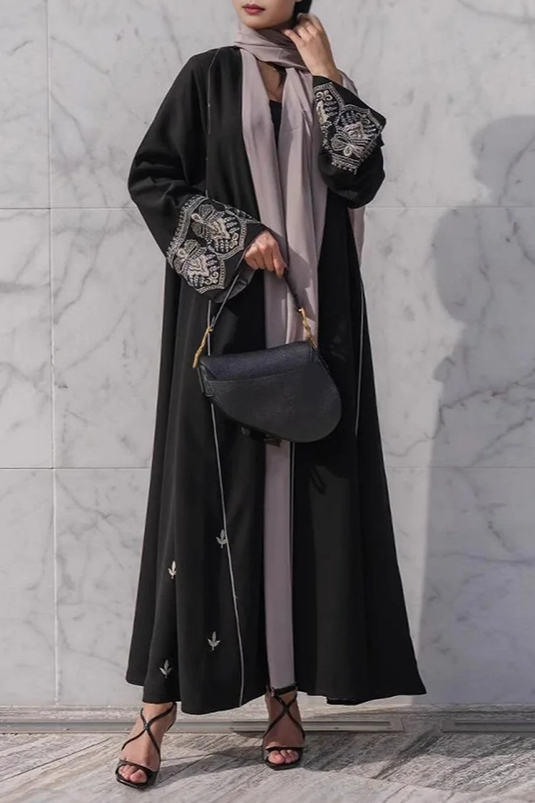 فيفيتش – عباية طويلة مفتوحة من الأمام بأكمام طويلة وتطريز بنقوش قبلية، كارديجان طويل