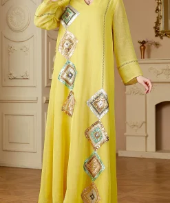 كن أول من يقيم “فيفيتش – فساتين قفطان ماكسي مزينة بترتر هندسي بألوان متداخلة وياقة عالية” إلغاء الرد