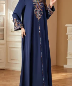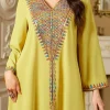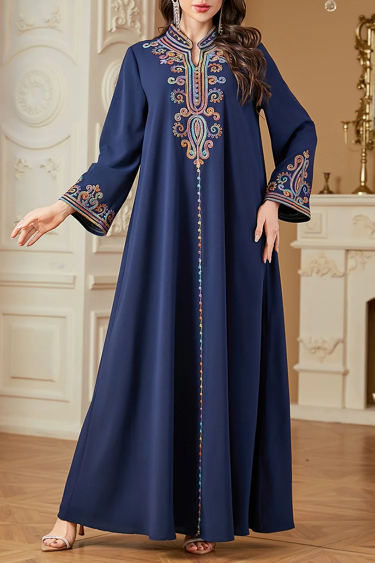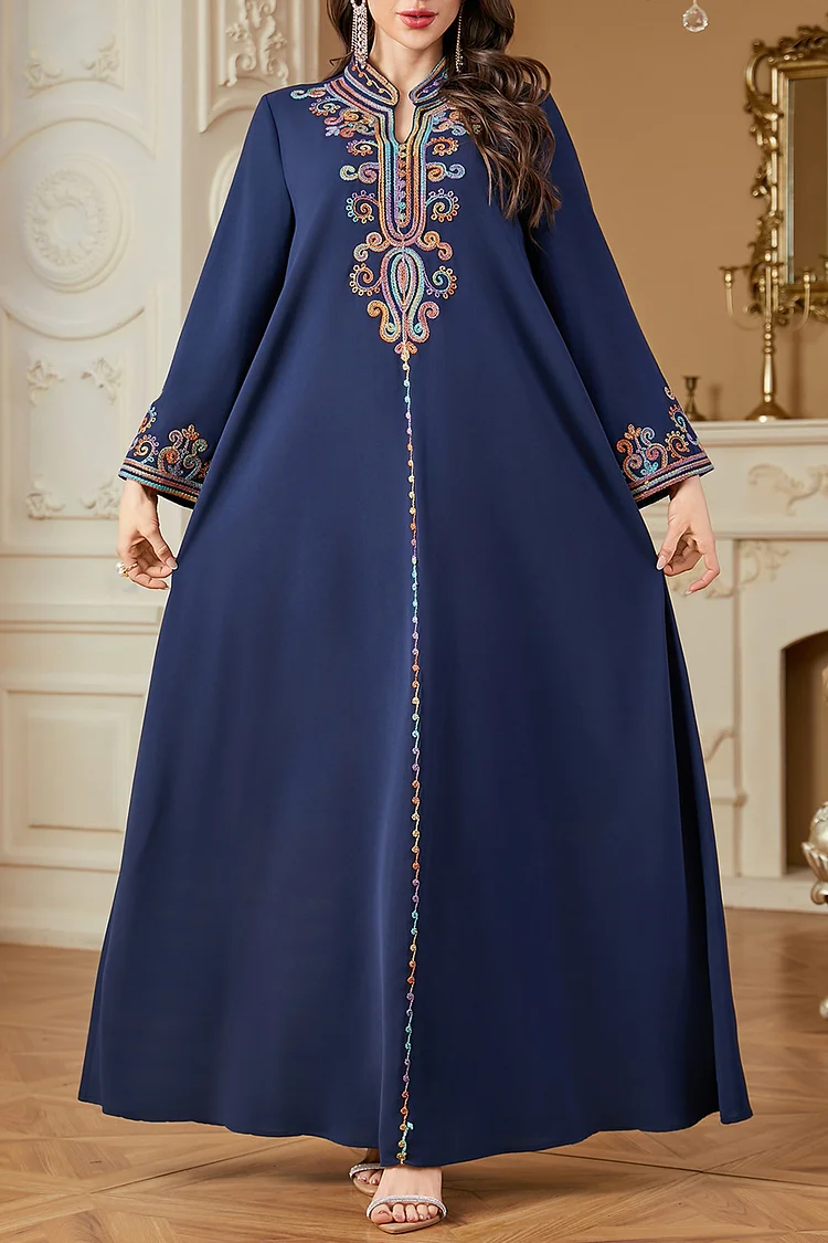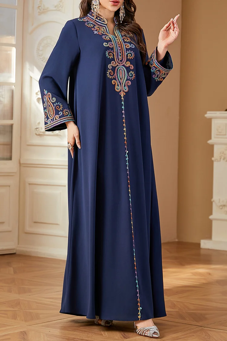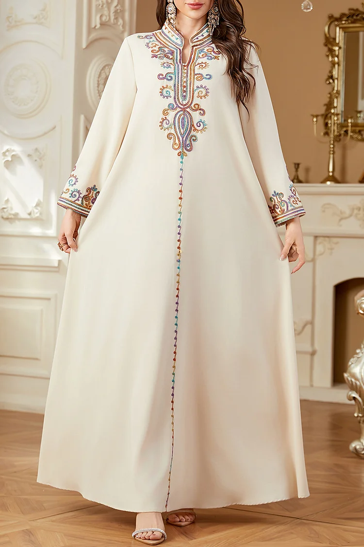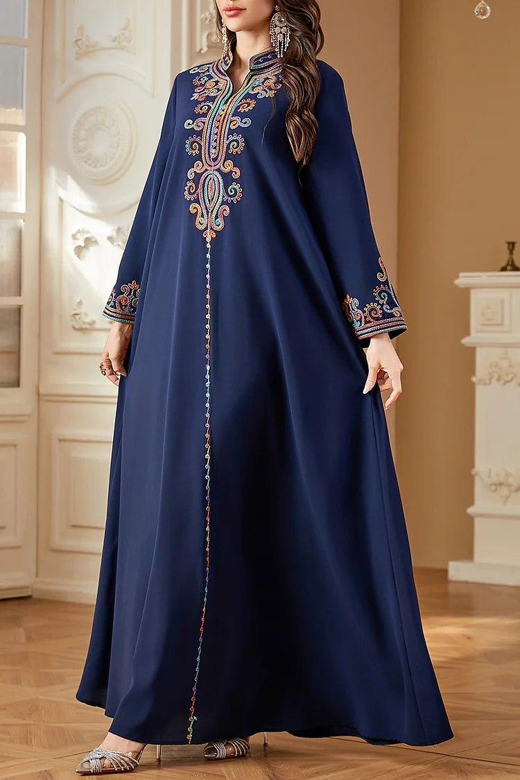 فيفيتش – فساتين ماكسي قفطان مطرزة متعددة الألوان بأكمام طويلة وياقة عالية