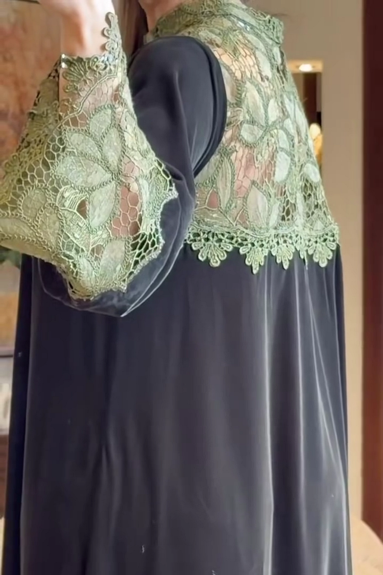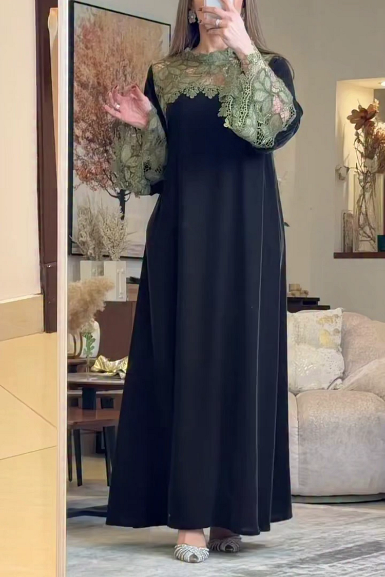 فيفيتش – فساتين ماكسي مخملية دانتيل قابلة للذوبان في الماء بألوان متداخلة – أسود [طلب مسبق]