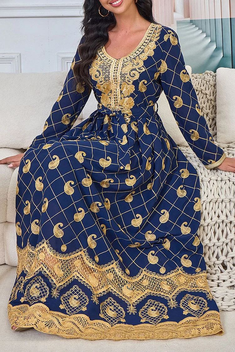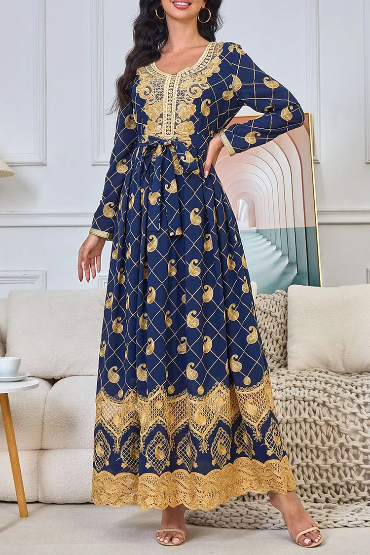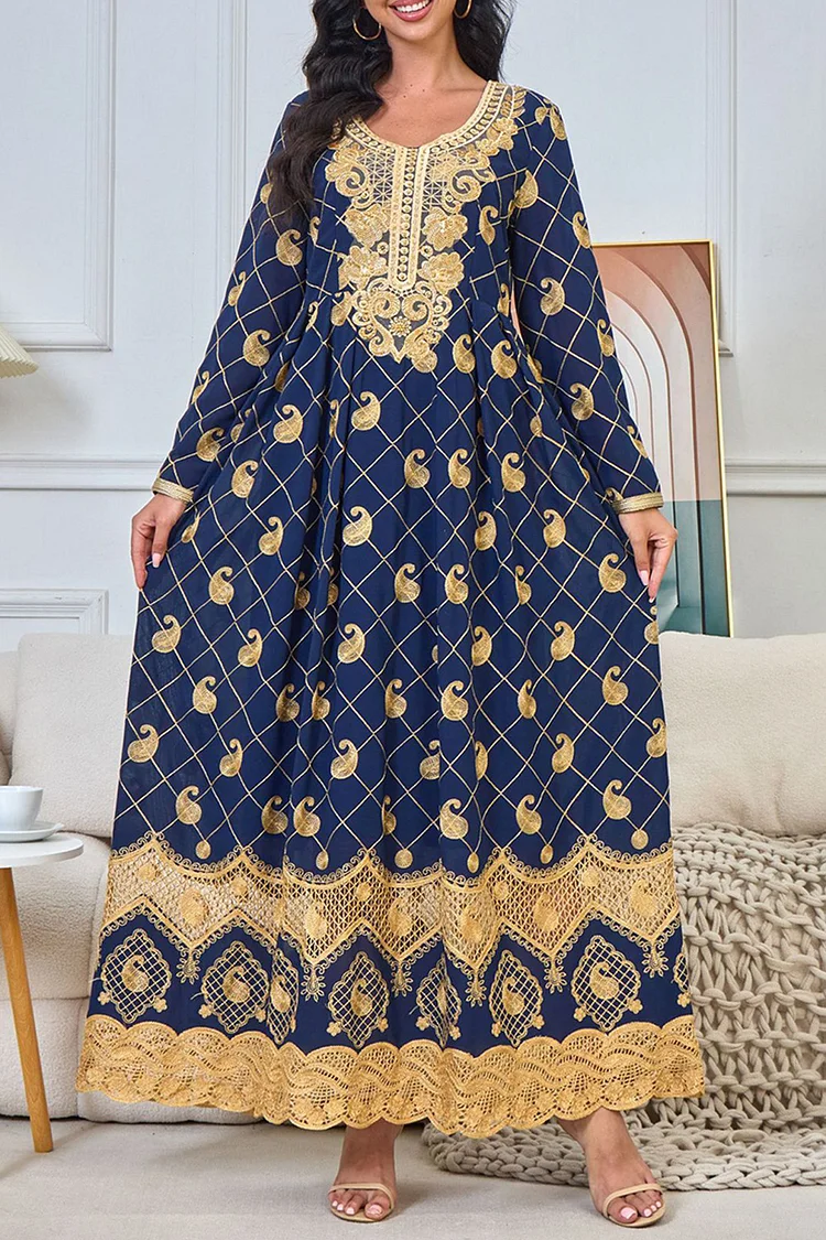 فيفيتش – فساتين ماكسي مطرزة بالخرز، بياقة دائرية مرقعة، مناسبة للحفلات