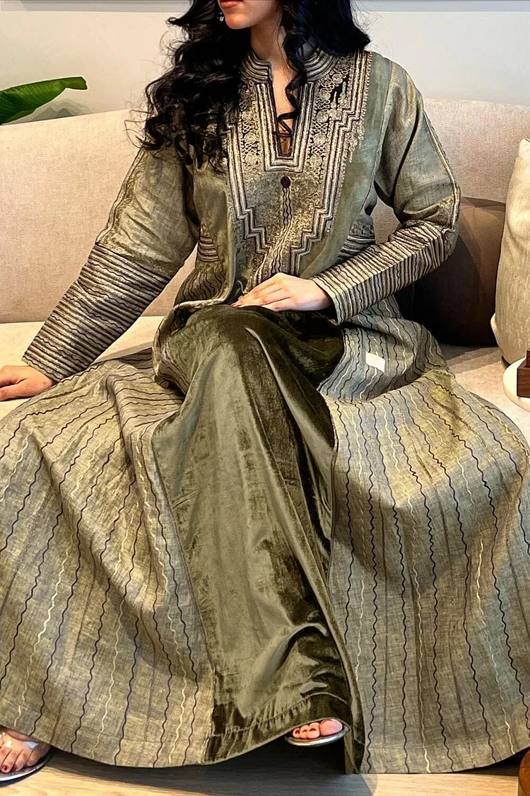 دار الجلابية – عباية كتان بكلفة و تطريز ترتر علي الكم