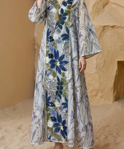 دار الجلابية – عباية كتان بكلفة و تطريز ترتر علي الكم