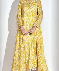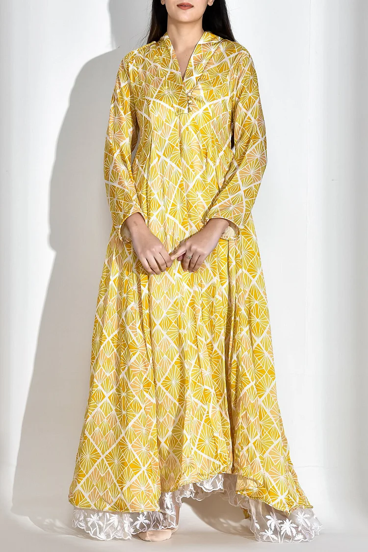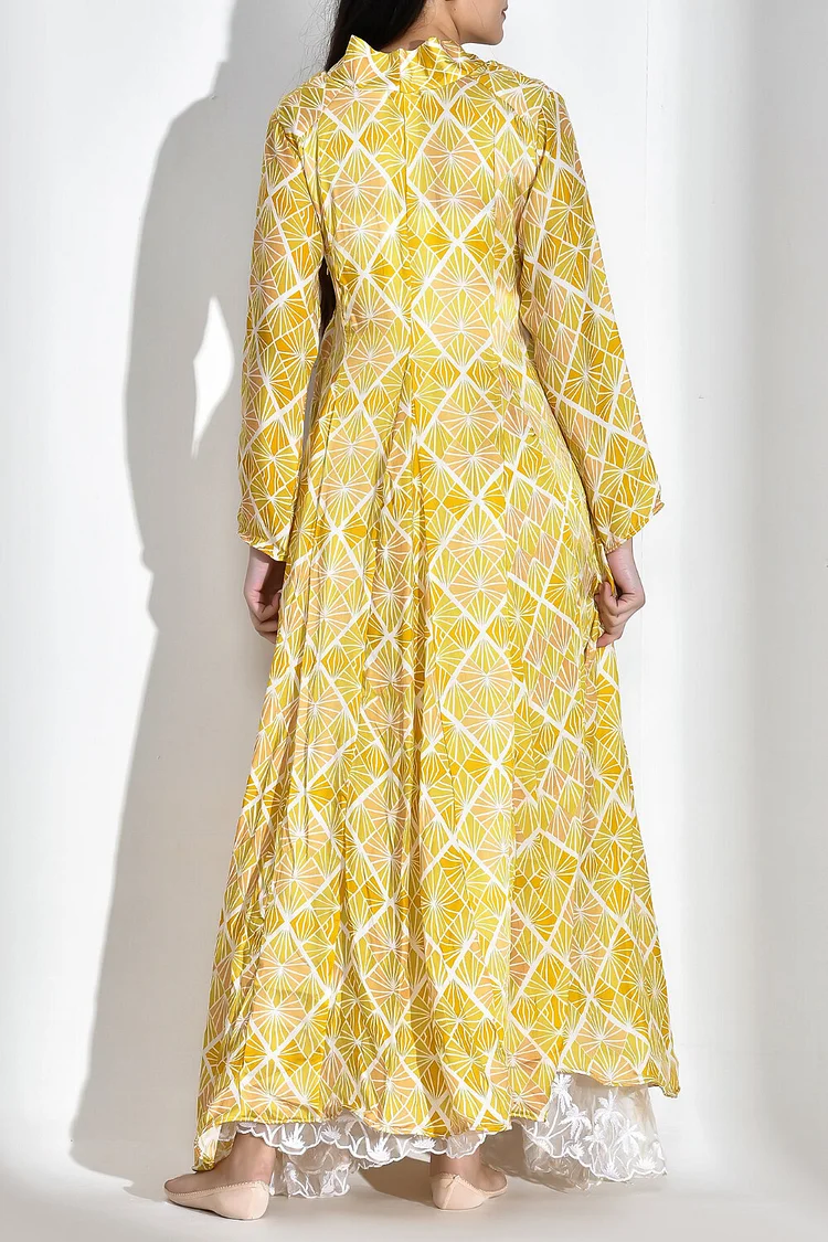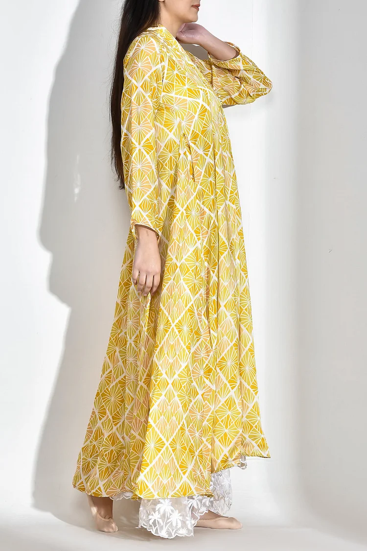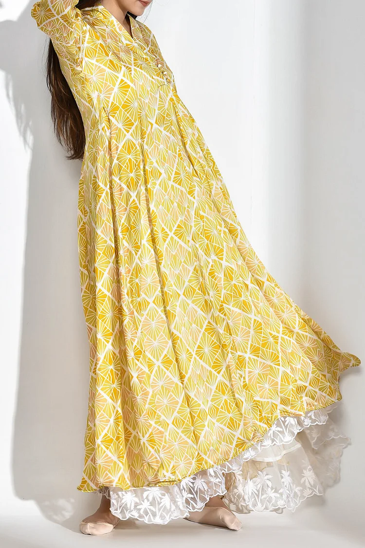 فيفيتش – فستان ماكسي فضفاض بأكمام طويلة وفتحة رقبة على شكل حرف V مطبوع بالكامل [طلب مسبق]