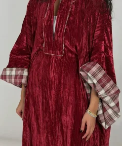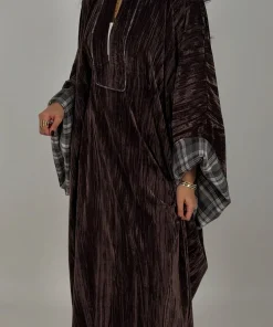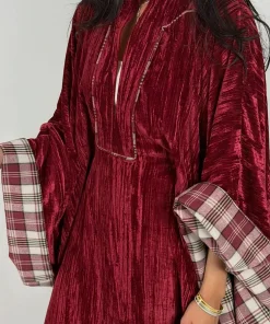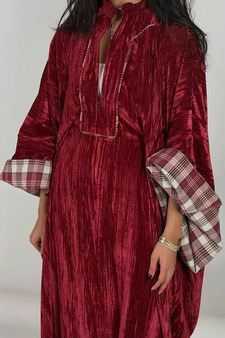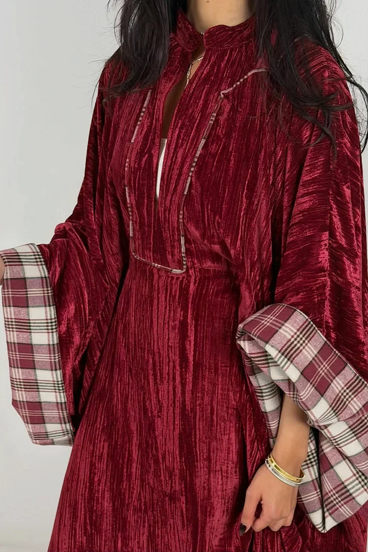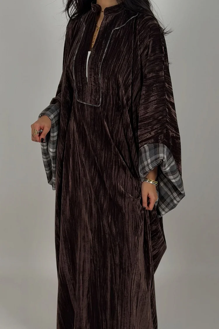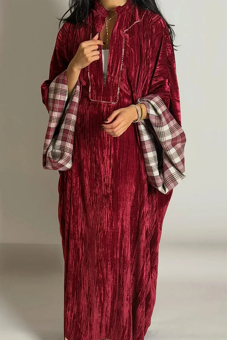 فيفيتش – فستان ماكسي مخملي فضفاض بنقشة مربعات وفتحة رقبة على شكل حرف V عميقة [طلب مسبق]