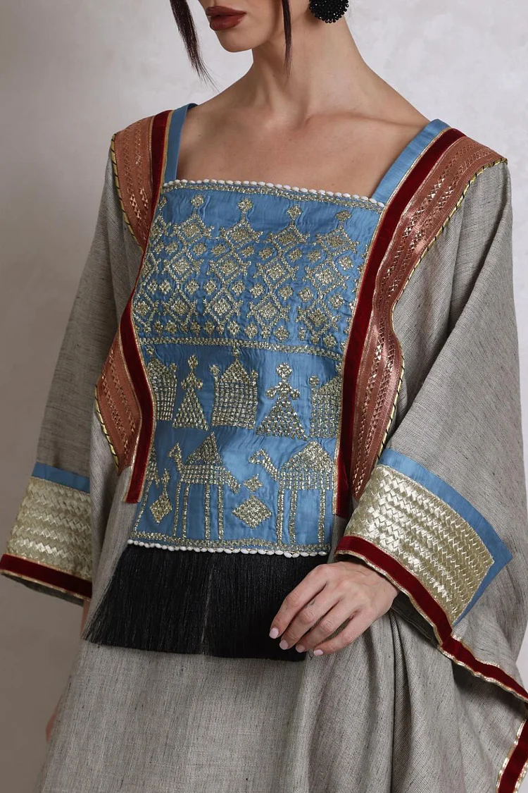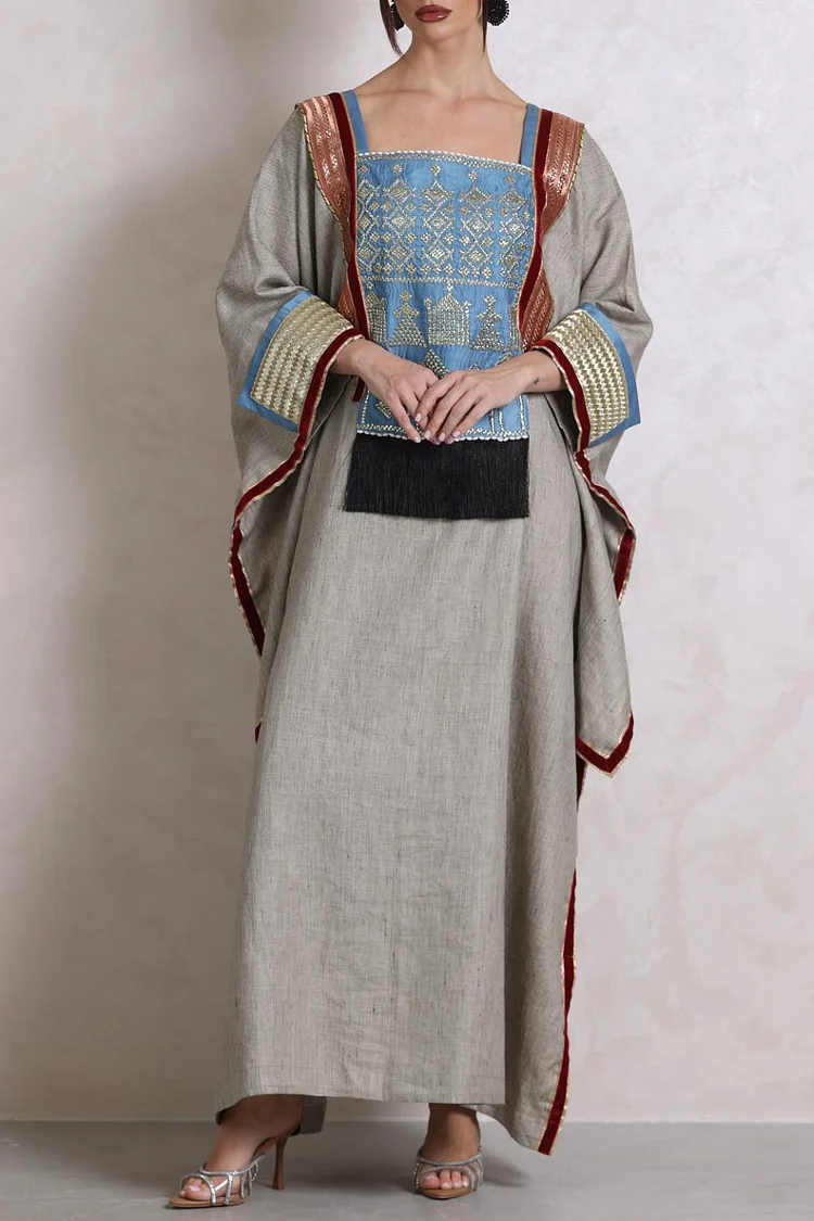 دار الجلابية – عباية كتان بجيبين و تطريز ايتامين سيناوي