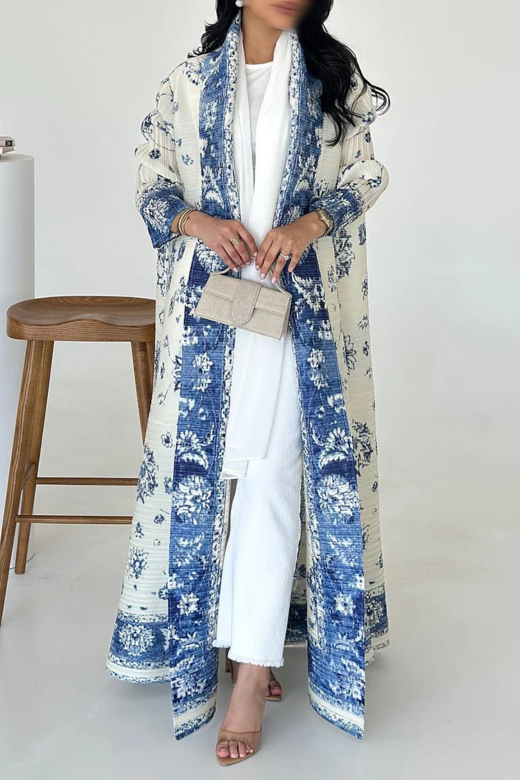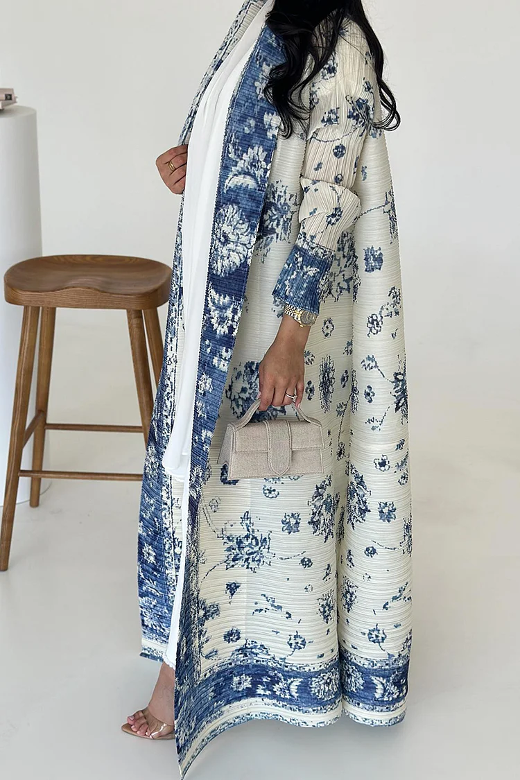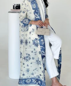 فيفيتش – كارديجان طويل بأكمام طويلة وطبعة زهور مفتوحة من الأمام بنمط عباية