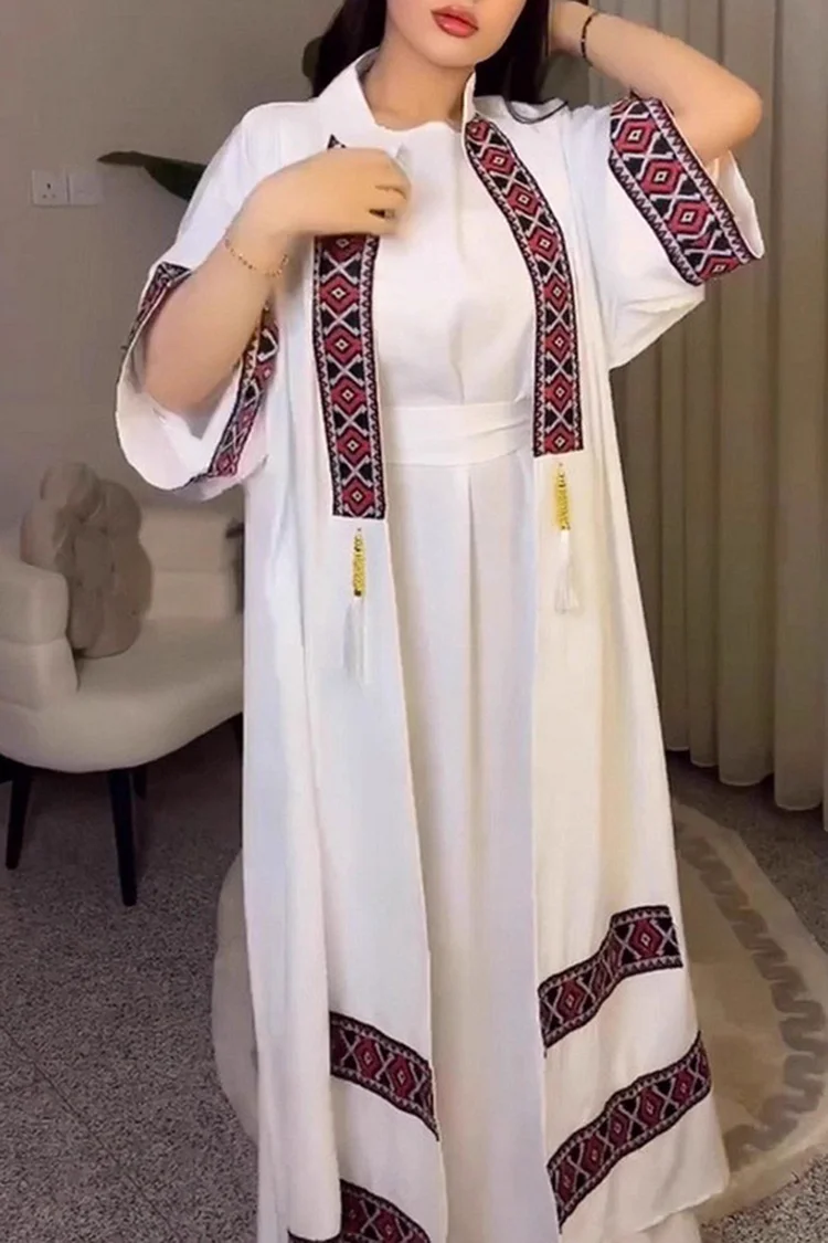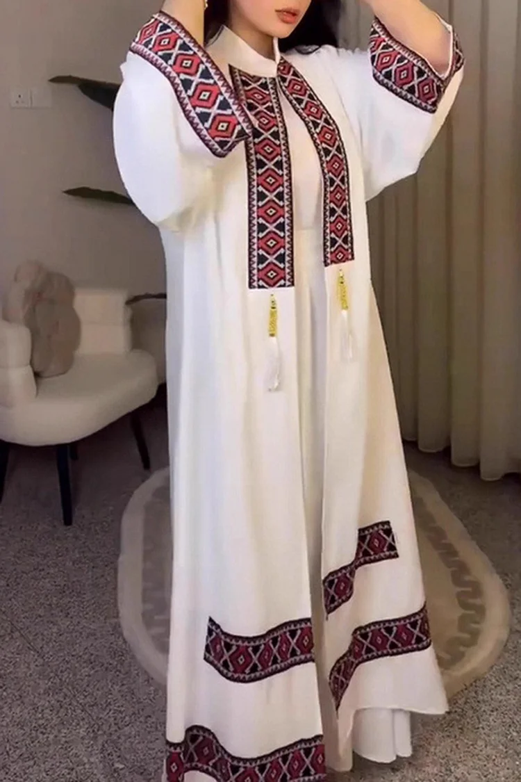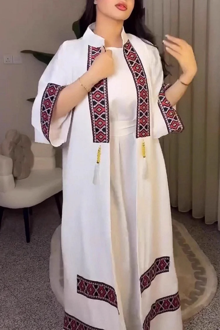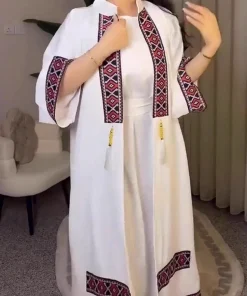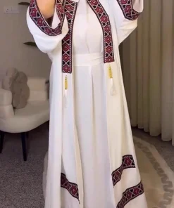 Be the first to review “فيفيتش – كارديجان عباية بأكمام طويلة، بياقة واقفة، بنقشة عرقية، مزين بشرابات – أبيض”