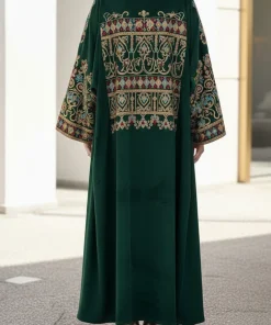فيفيتش – كارديجان عباية مخملية بأكمام واسعة مطرزة بنقوش عرقية – أخضر [طلب مسبق]