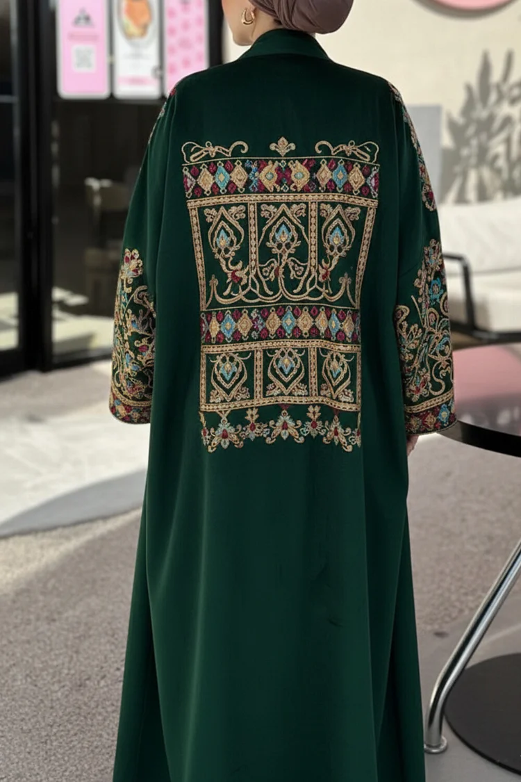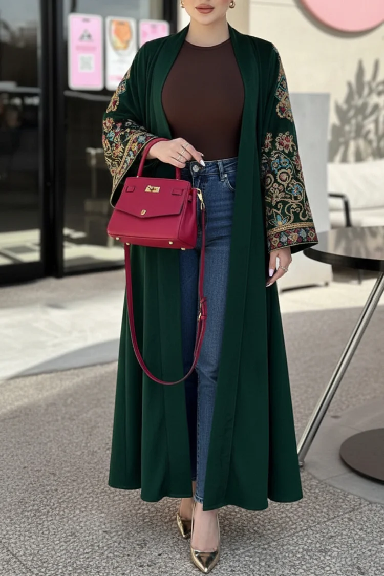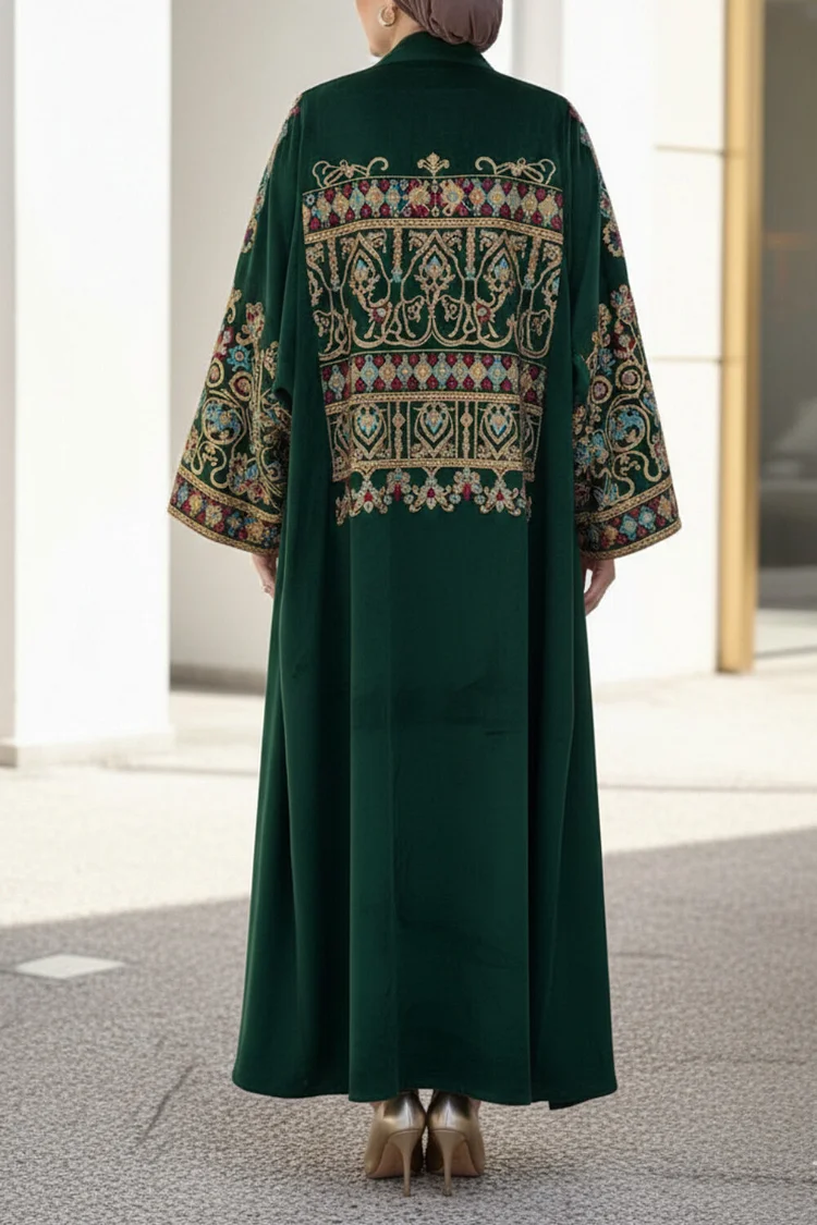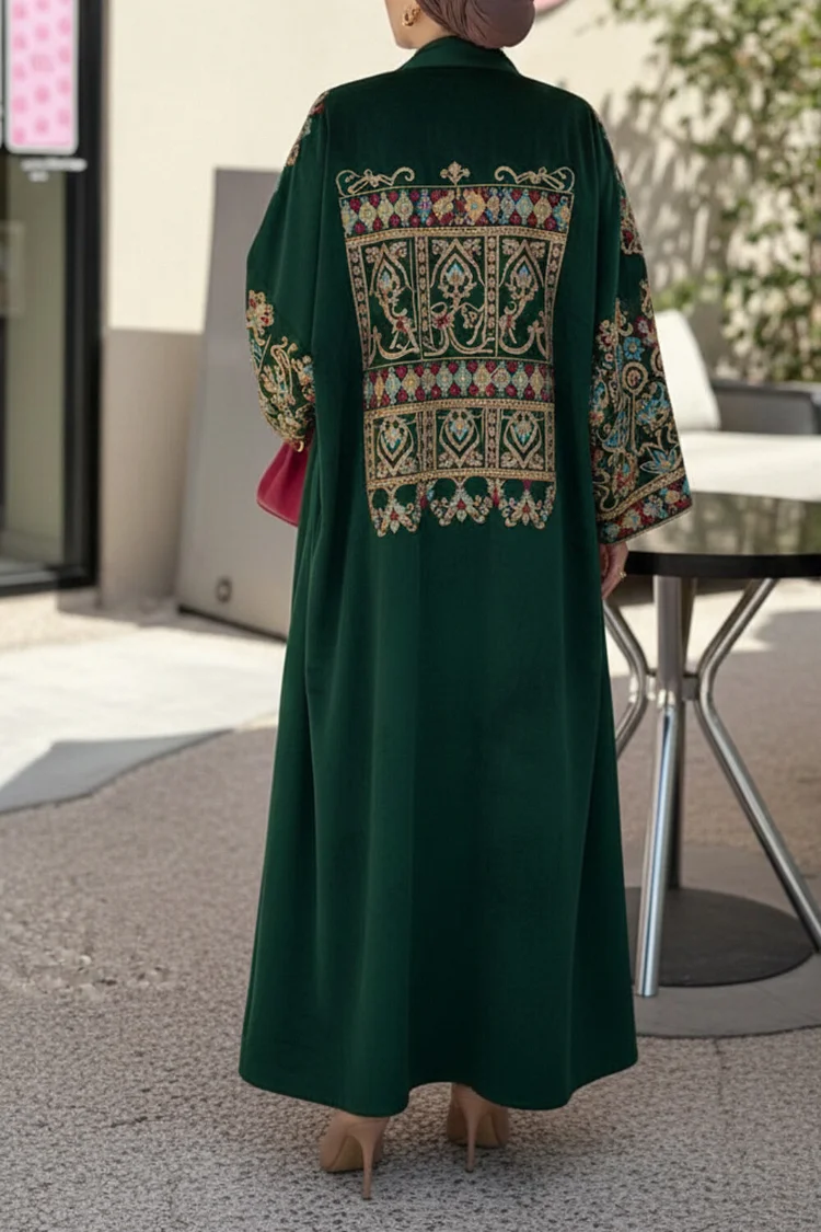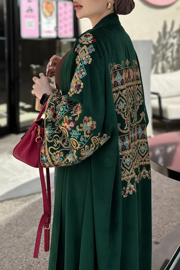 فيفيتش – كارديجان عباية مخملية بأكمام واسعة مطرزة بنقوش عرقية – أخضر [طلب مسبق]