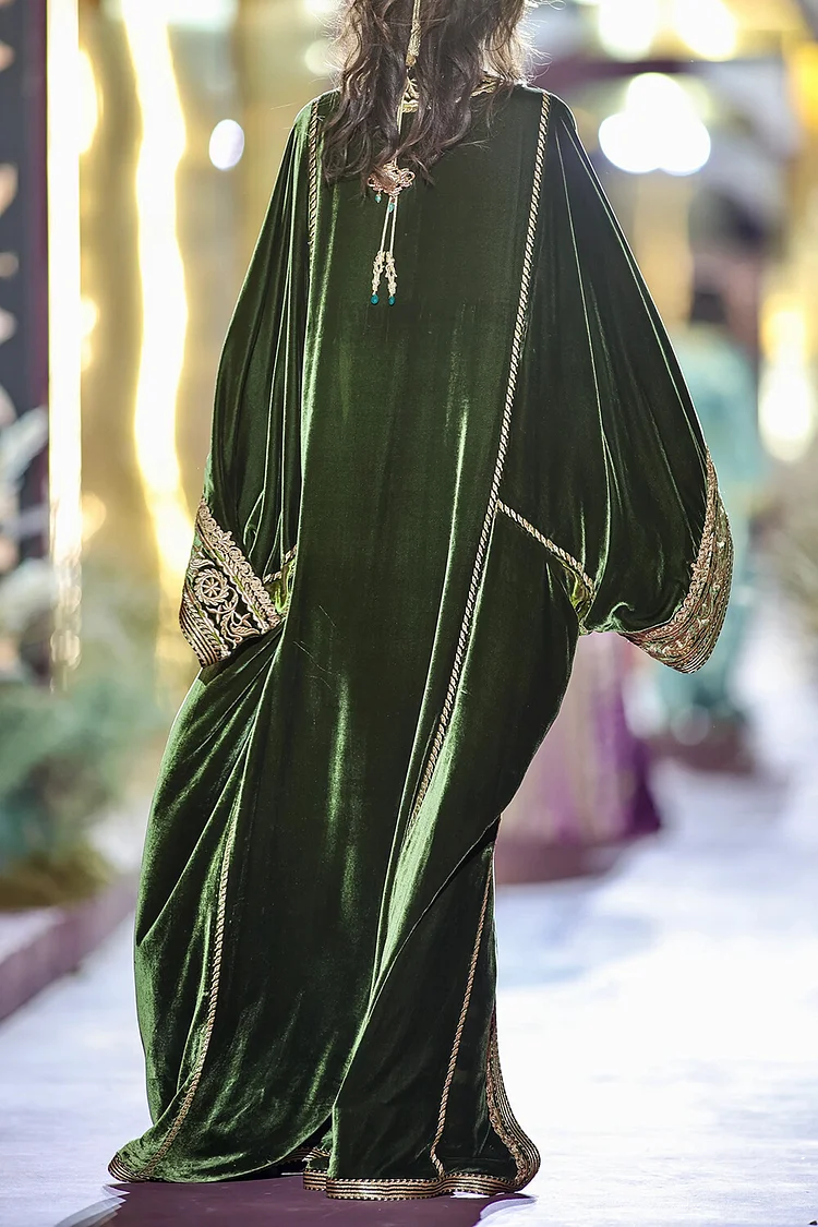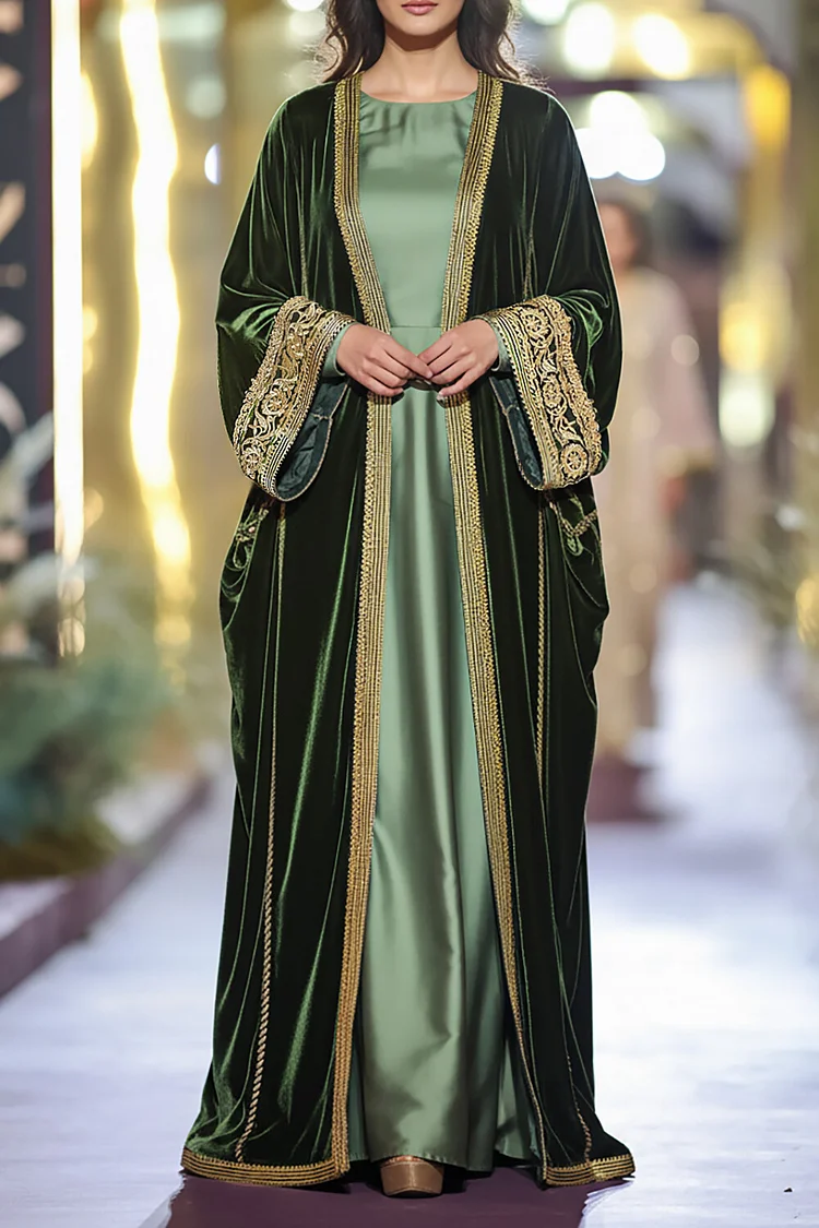 فيفيتش – كارديجان عباية مخملية مطرزة بأكمام واسعة