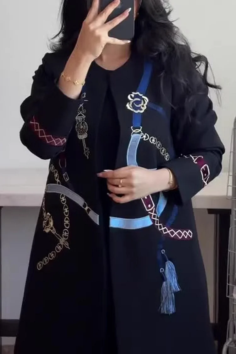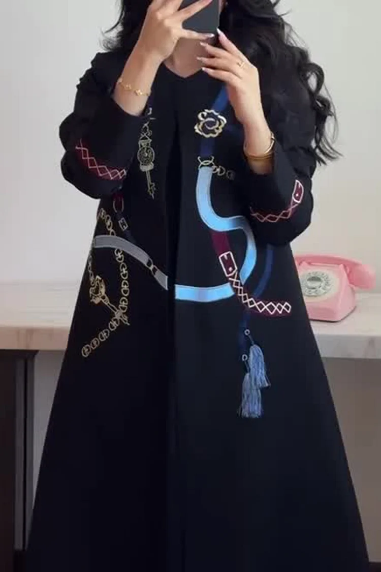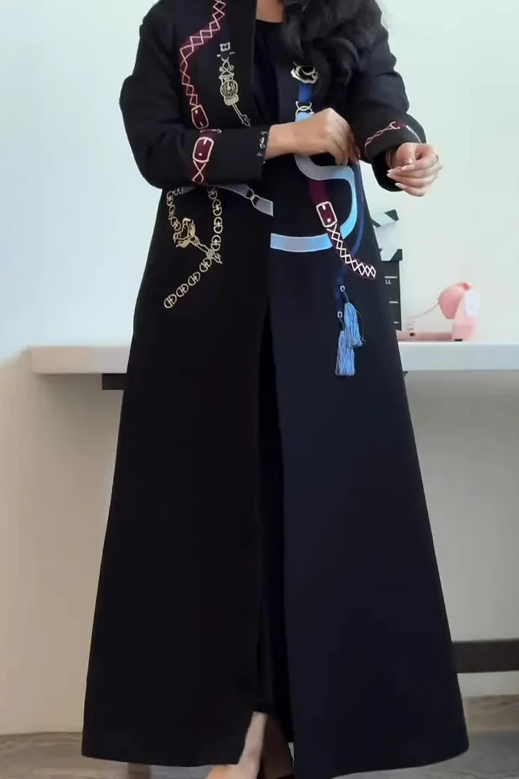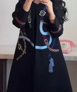 Be the first to review “فيفيتش – معطف ترنش أسود بأكمام طويلة ورقبة دائرية وطبعة تجريدية –”