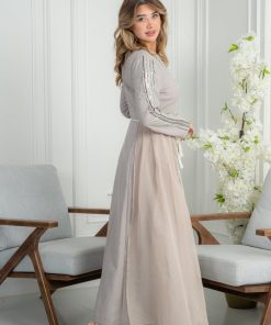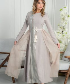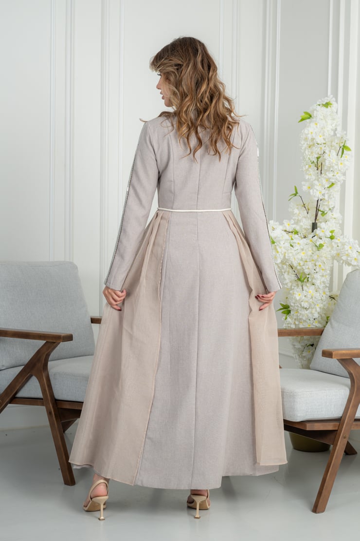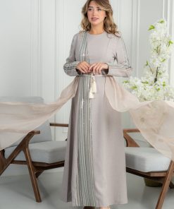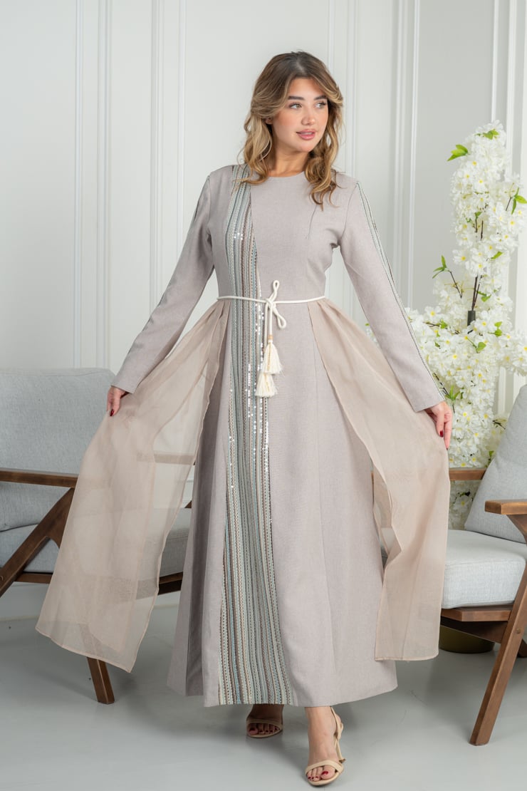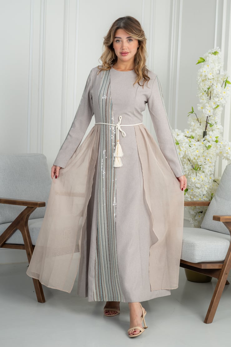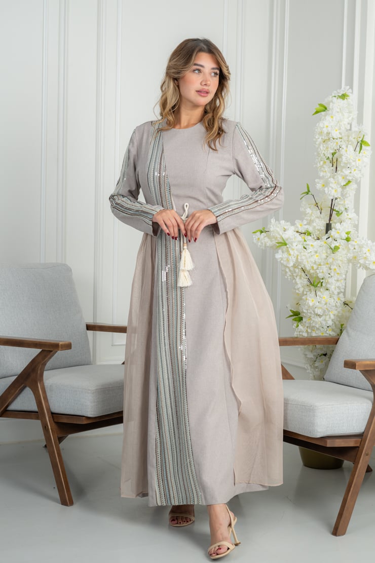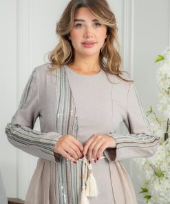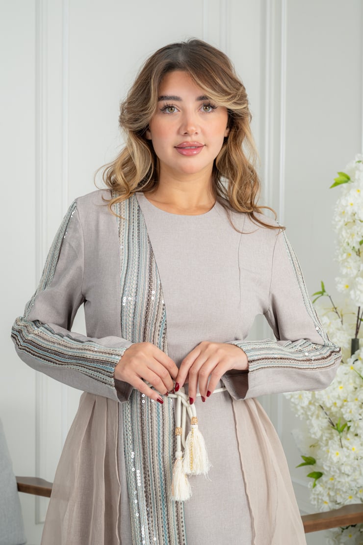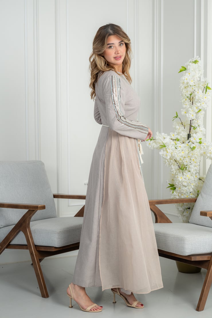 دار الجلابية – عباية كتان بكلفة و تطريز ترتر علي الكم