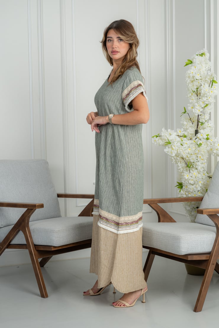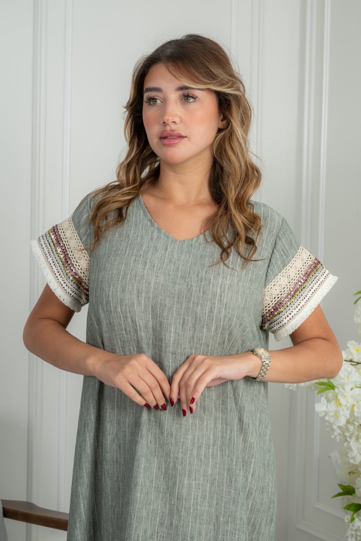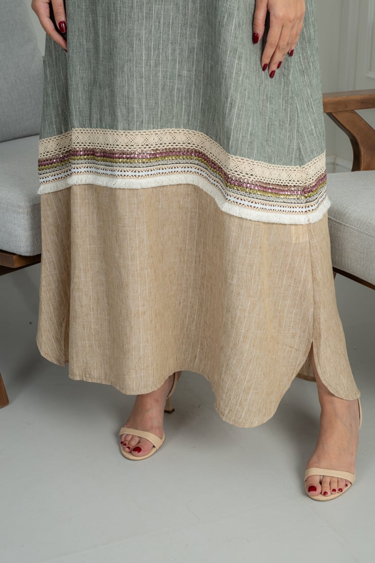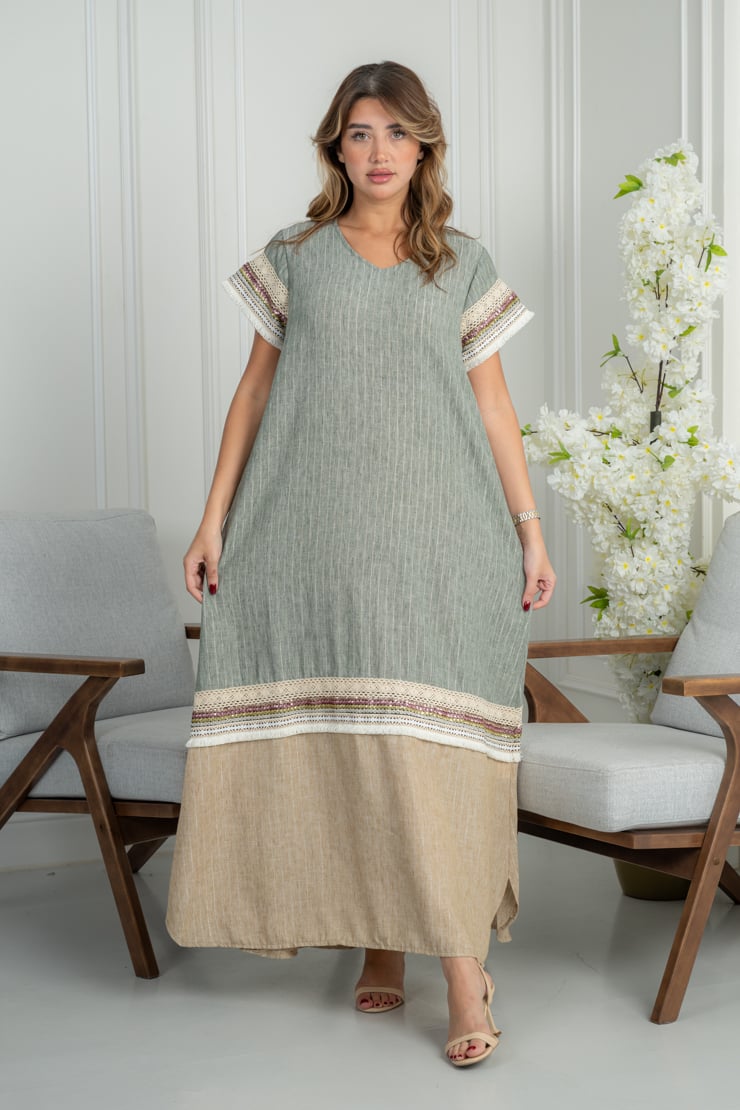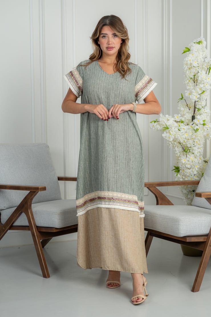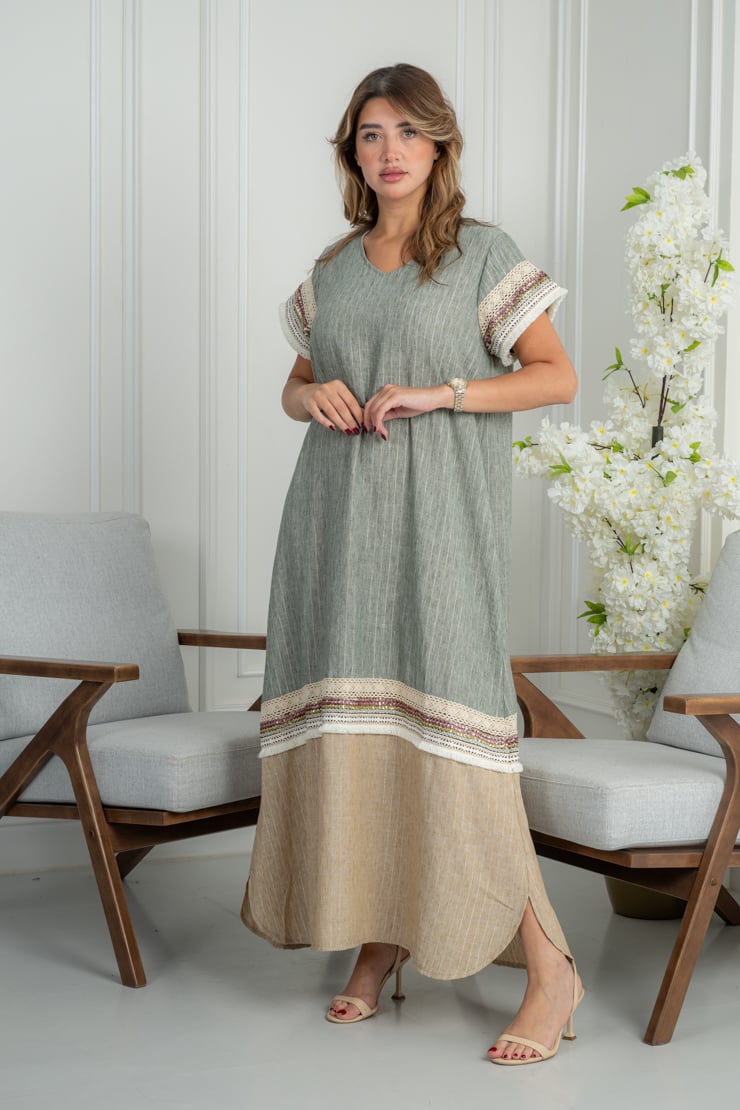 دار الجلابية – عباية كتان بجيبين و تطريز ايتامين سيناوي
