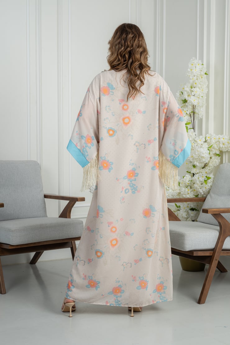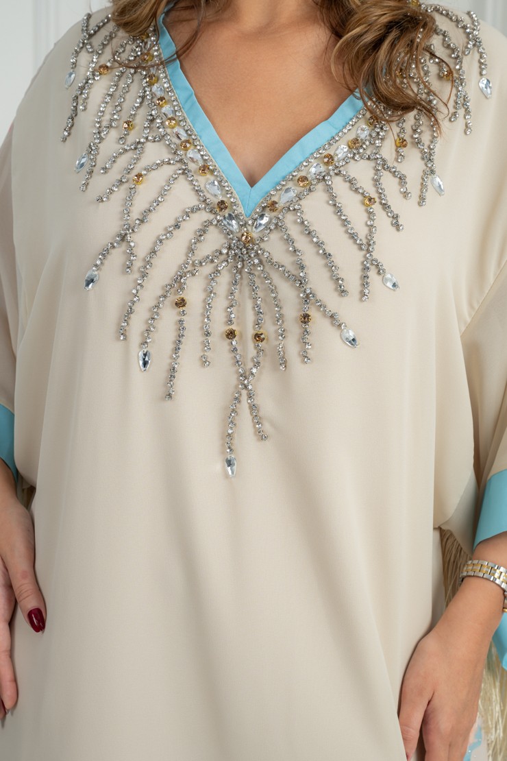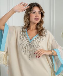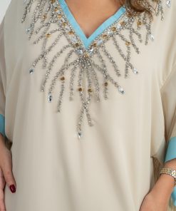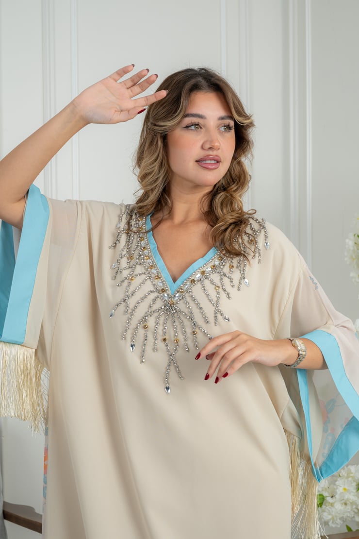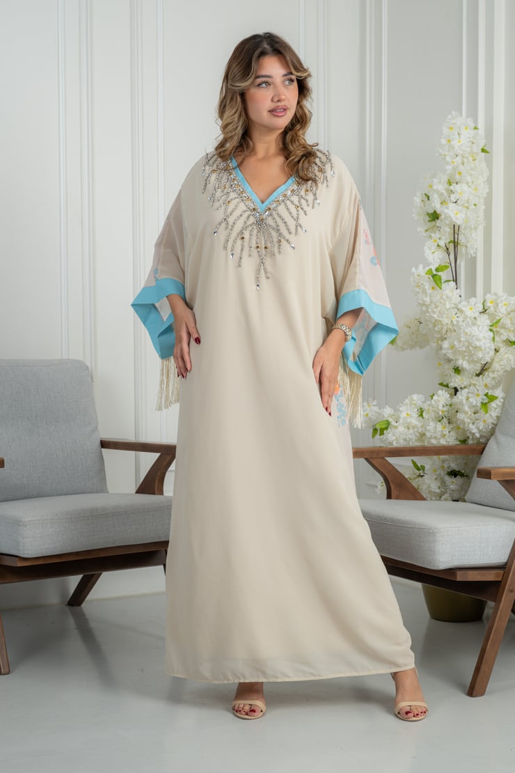 دار الجلابية – عباية كتان بكلفة و تطريز ترتر علي الكم