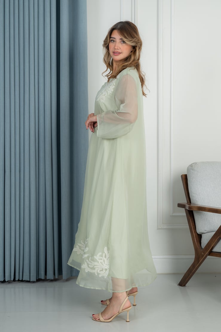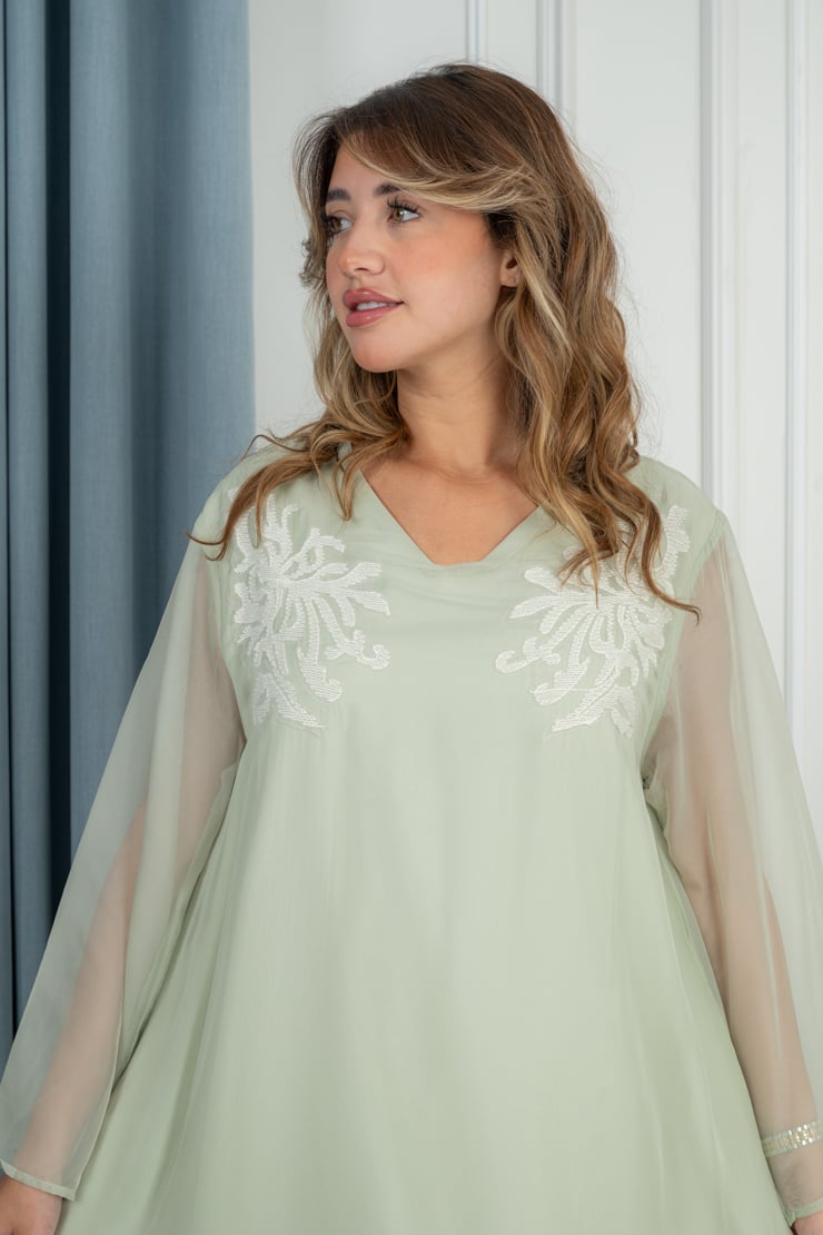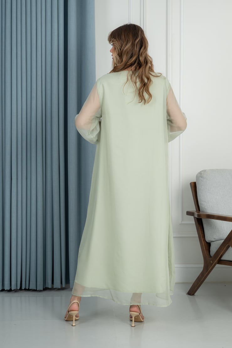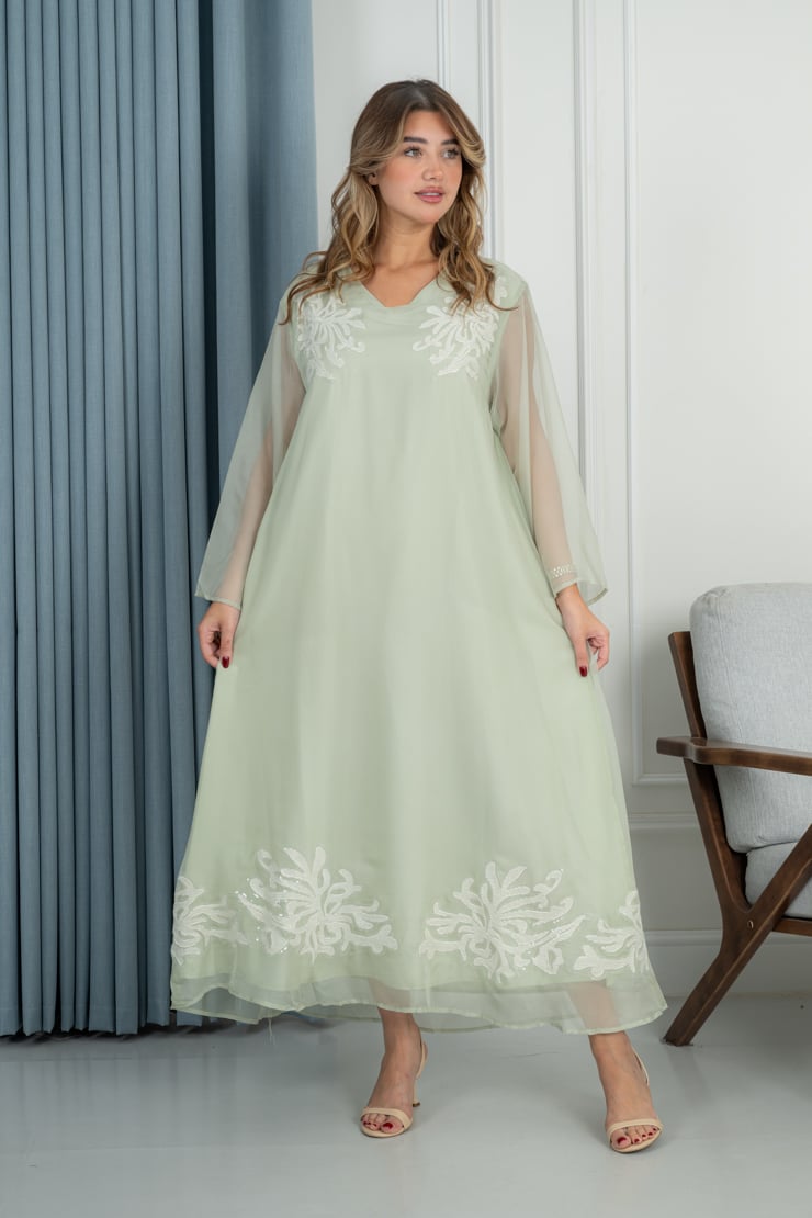 دار الجلابية – عباية كتان بكلفة و تطريز ترتر علي الكم