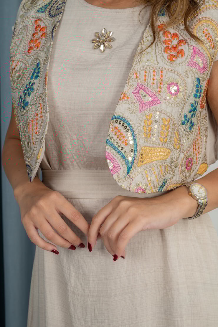 دار الجلابية – عباية كتان بكلفة و تطريز ترتر علي الكم