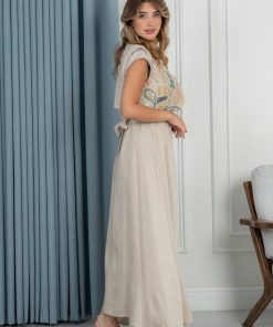 دار الجلابية – عباية كتان بجيبين و تطريز ايتامين سيناوي