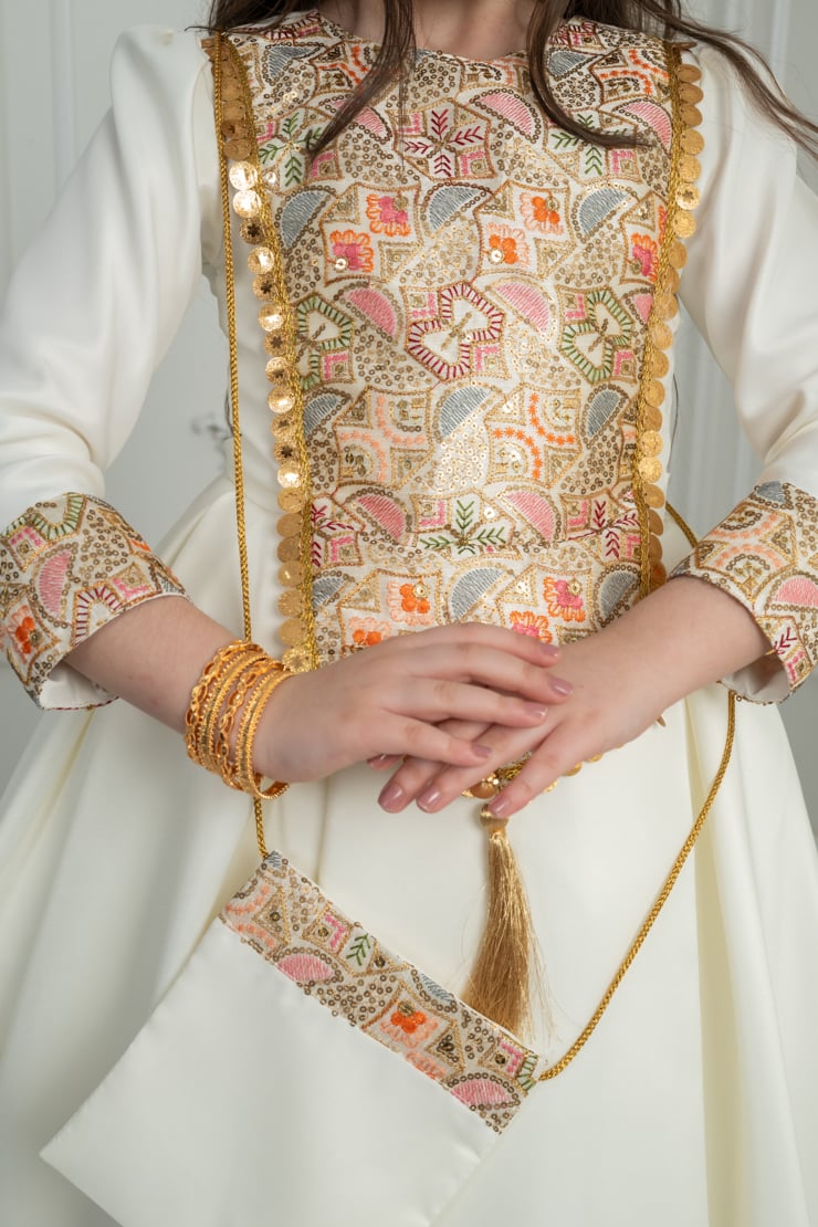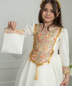 لورا فاشن – فستان أطفال أبيض تراثي بتفاصيل ملونة