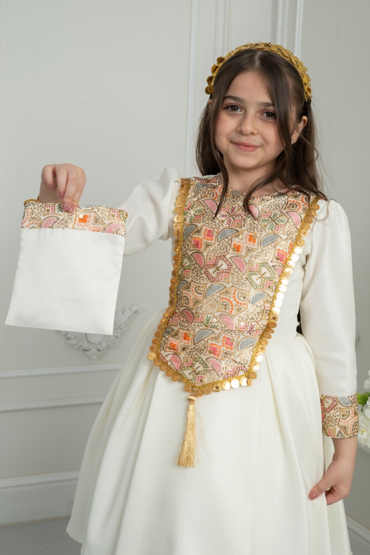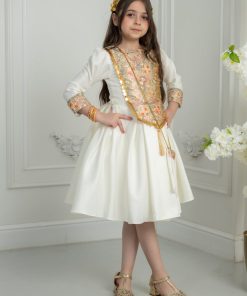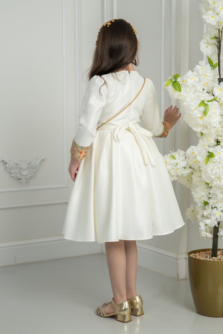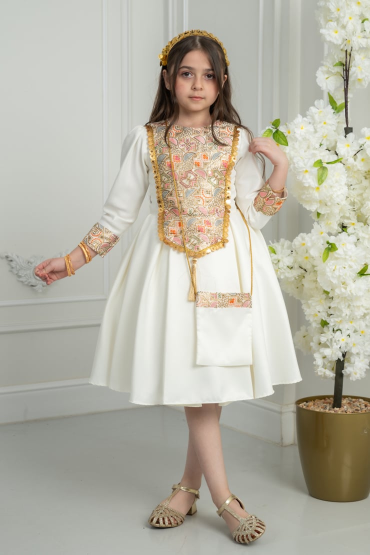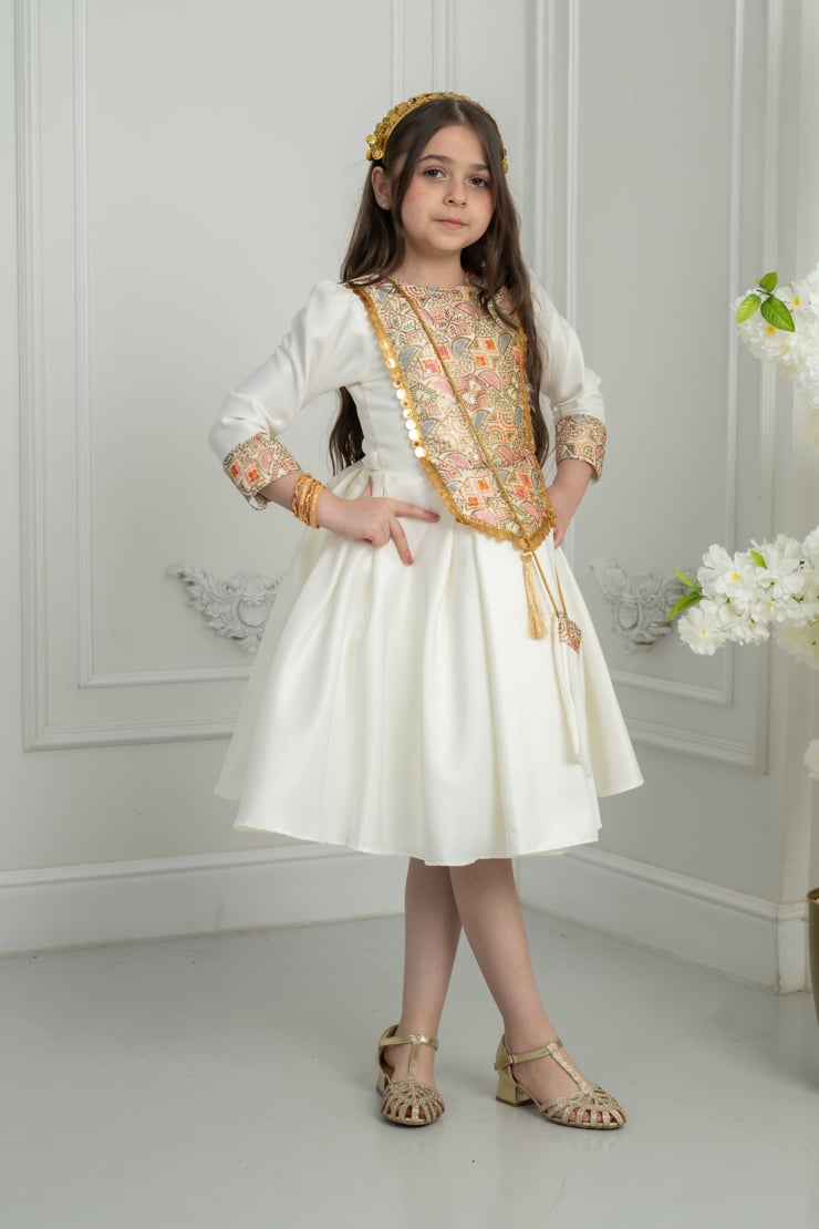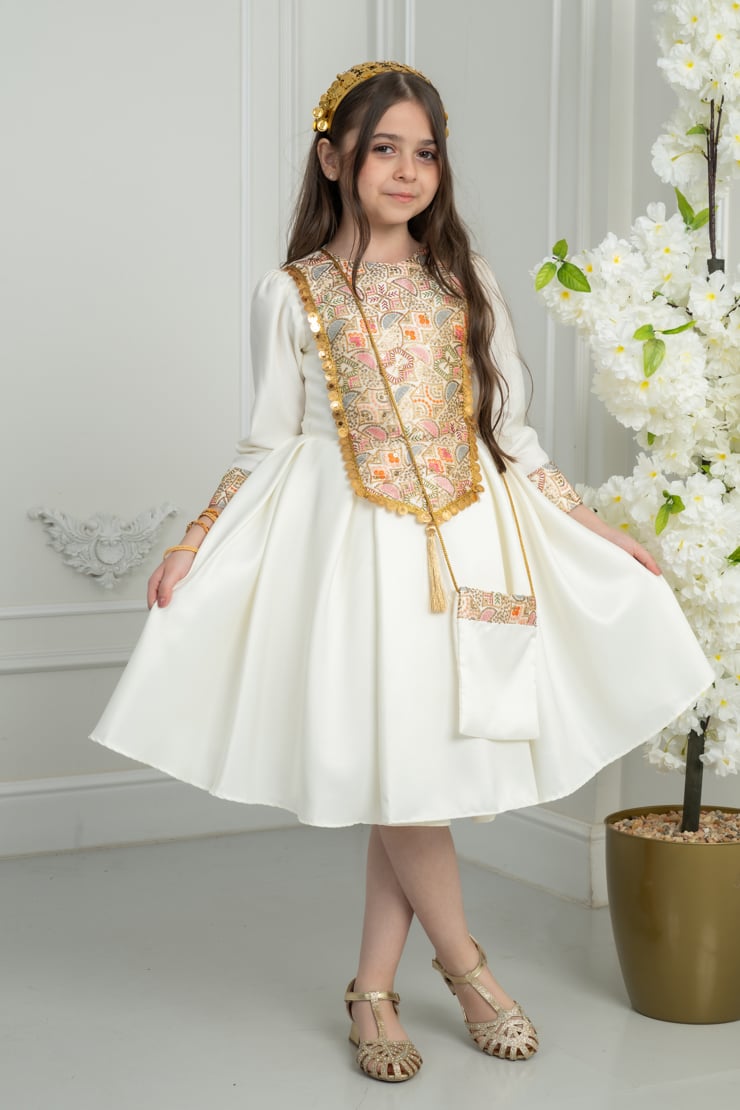 لورا فاشن – فستان بناتي أنيق بلون أوف وايت بتصميم فاخر للمناسبات