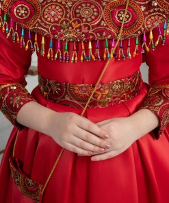 لورا فاشن – فستان أطفال أبيض تراثي بتطريز ذهبي