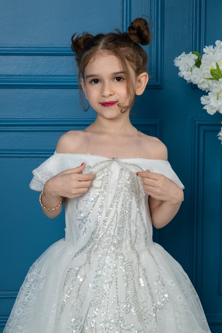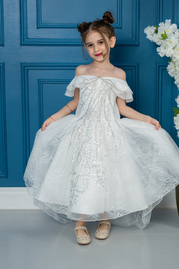لورا فاشن – فستان بناتي أبيض أنيق بتصميم فاخر للمناسبات