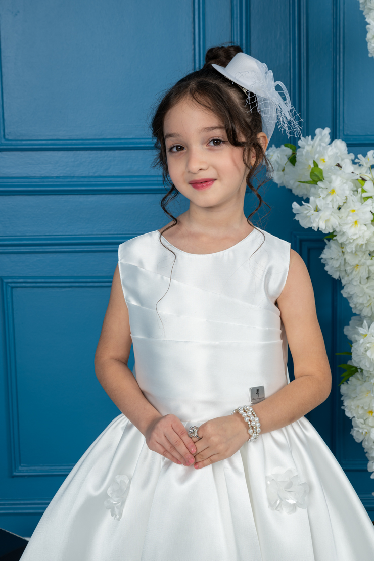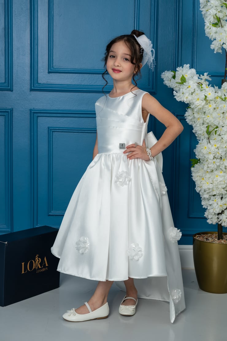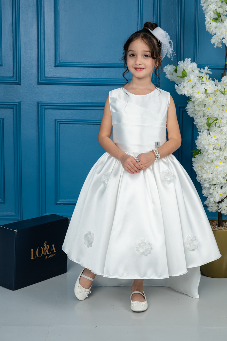 لورا فاشن – فستان بناتي أنيق بلون أوف وايت بتصميم فاخر للمناسبات