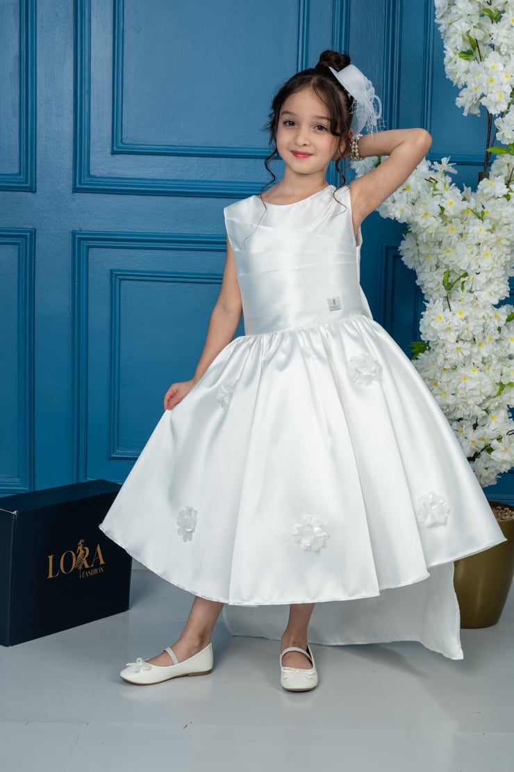لورا فاشن – فستان بناتي أبيض أنيق بتصميم فاخر للمناسبات