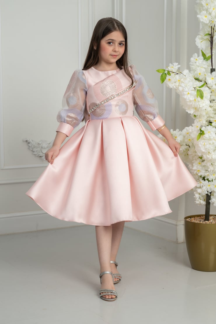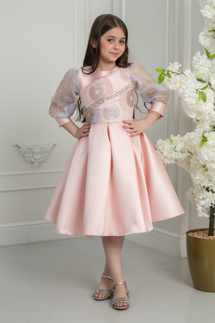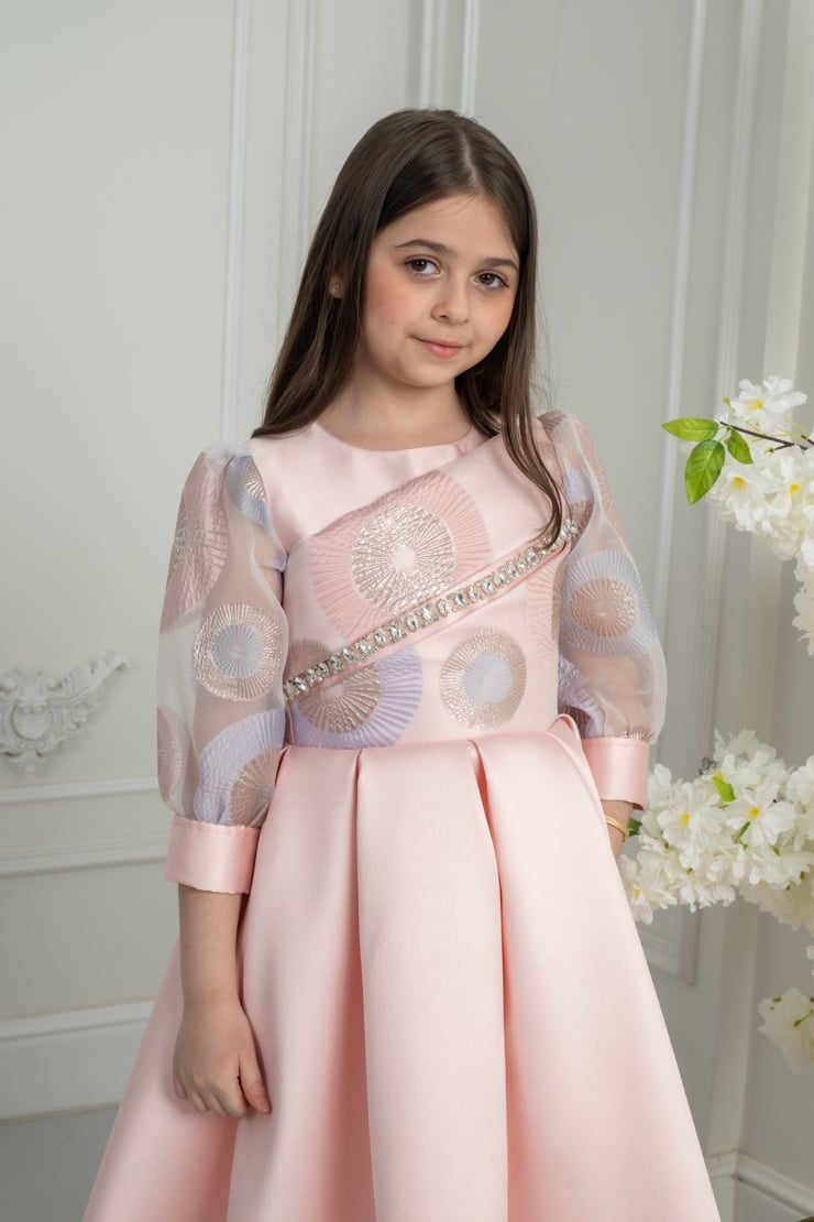 فستان بناتي راقٍ بلون وردي ناعم، يجمع بين الفخامة والنعومة، بتصميم أنثوي راقي يمنح طفلتك إطلالة ملكية جذابة في كل مناسبة ✨