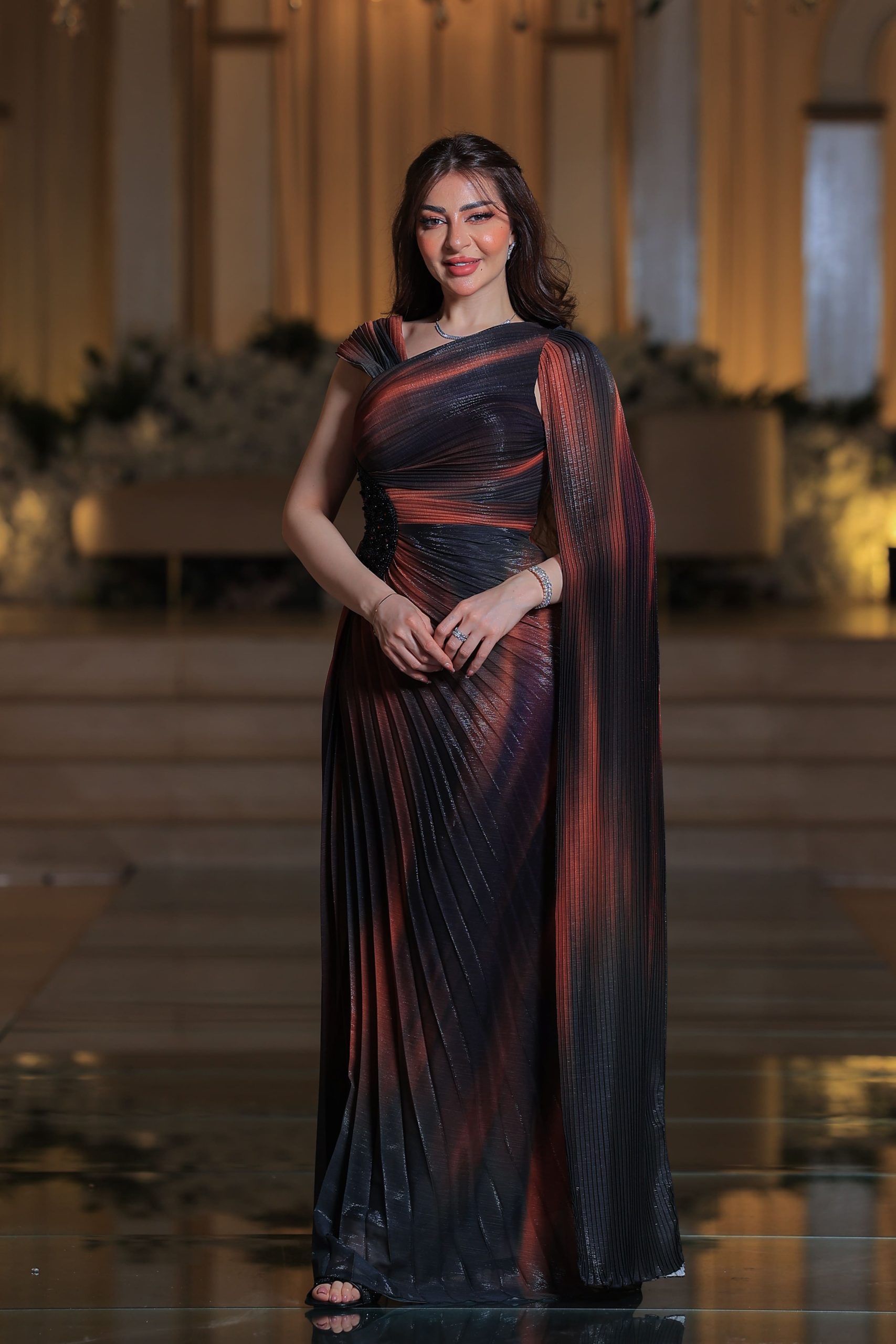 لورا فاشن – فستان سهرة بطيات متعددة الألوان بتصميم عصري فاخر