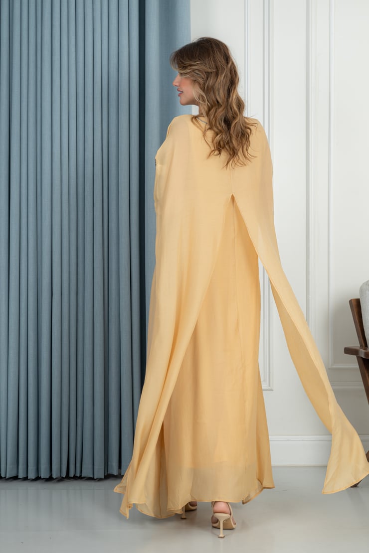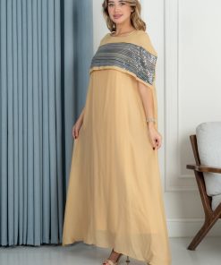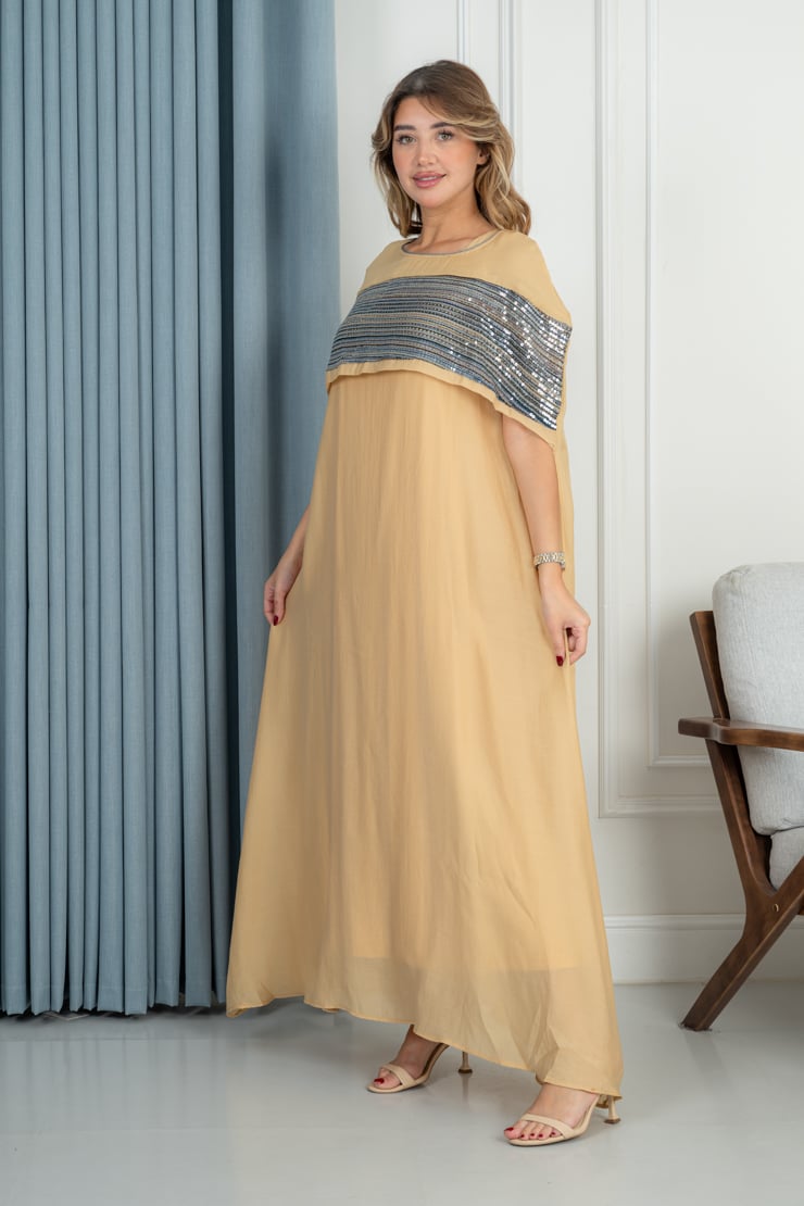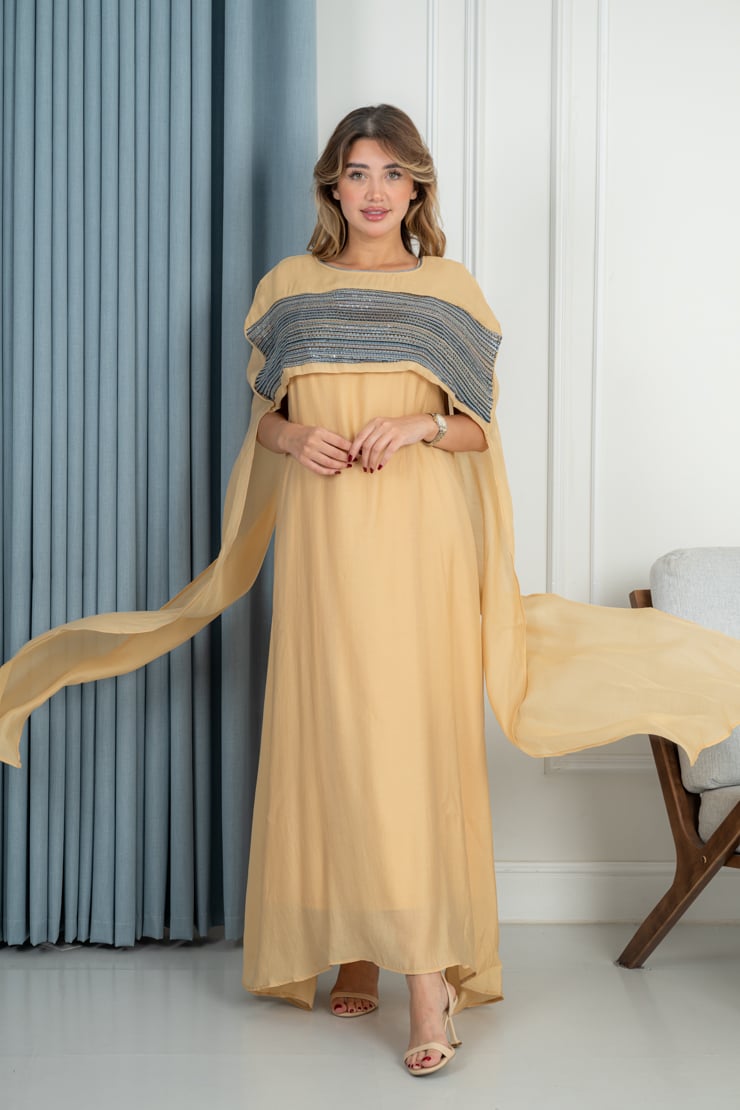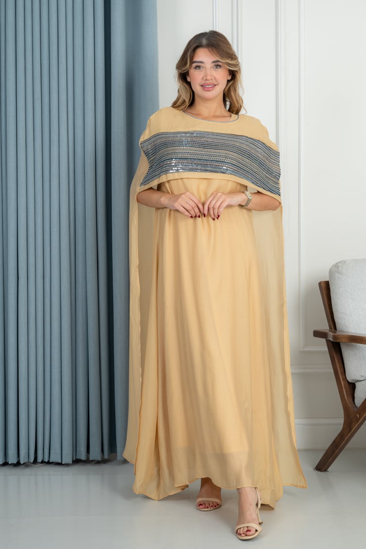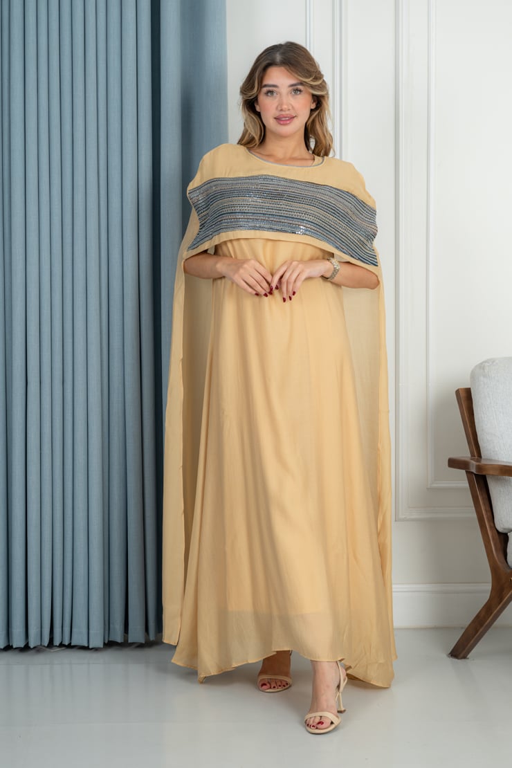 دار الجلابية – عباية كتان بكلفة و تطريز ترتر علي الكم