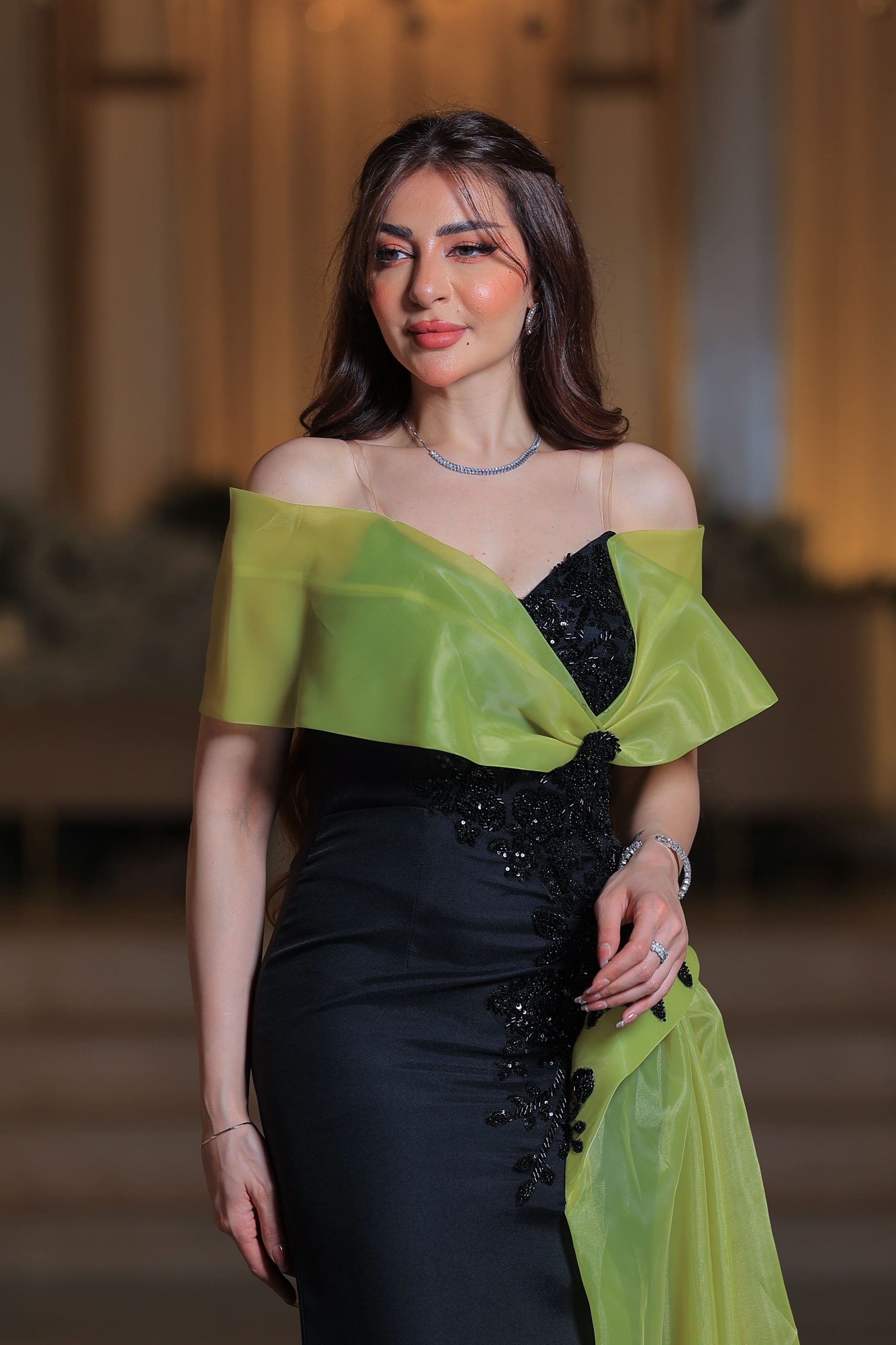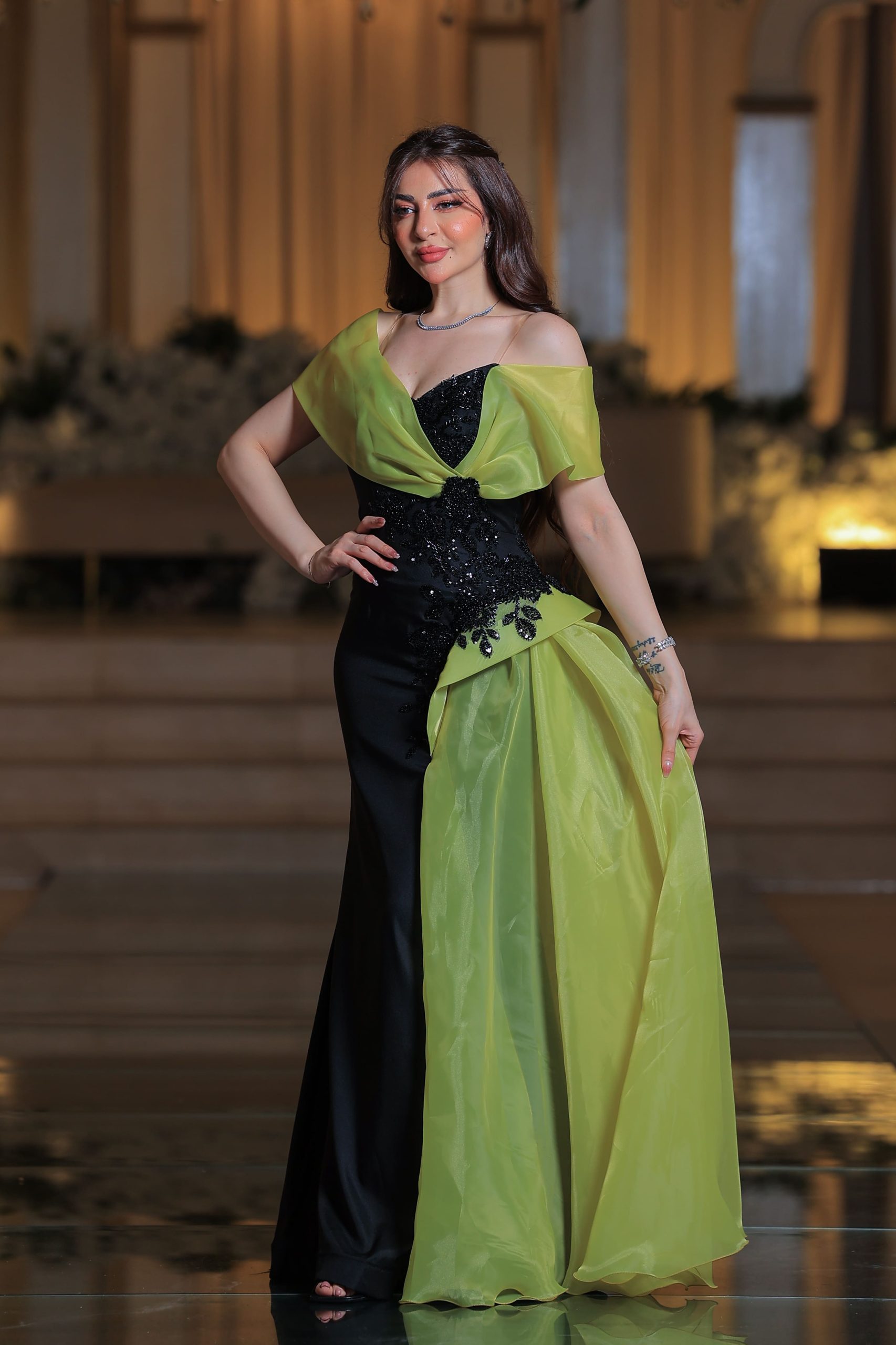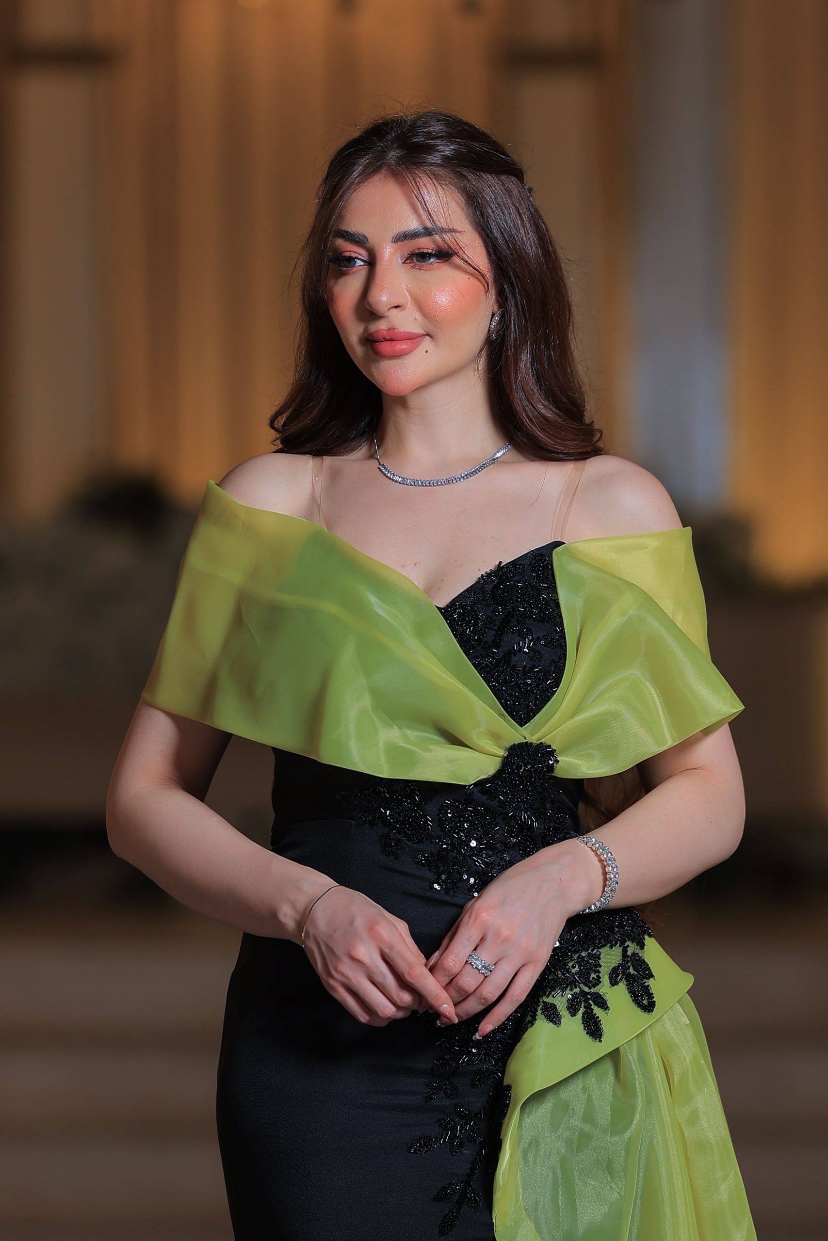 لورا فاشن – فستان لورا الأسود والليموني المطرّز الفخم