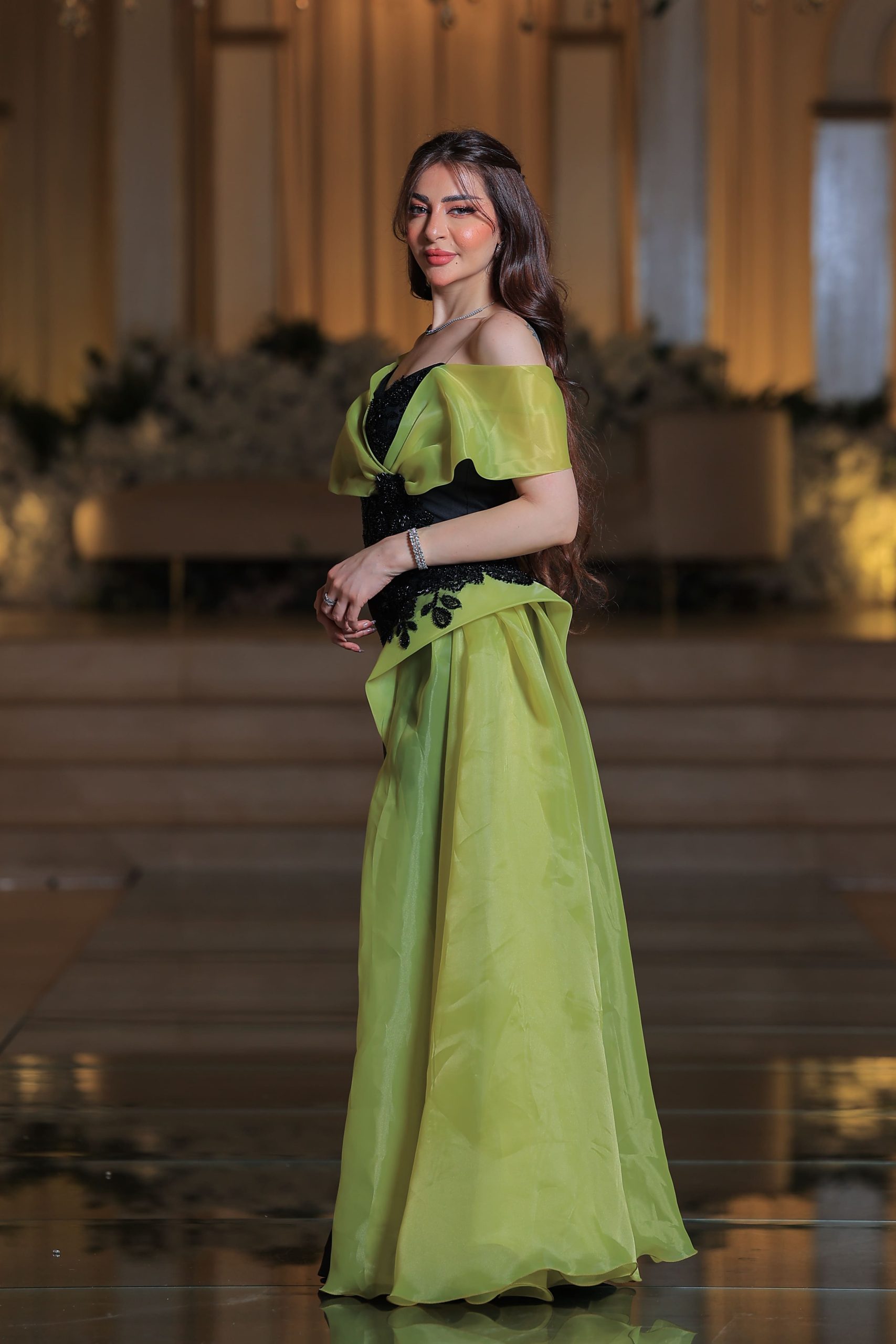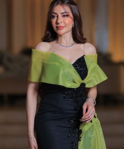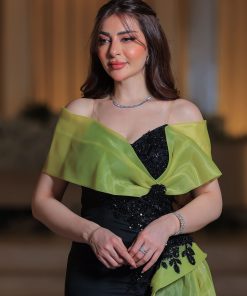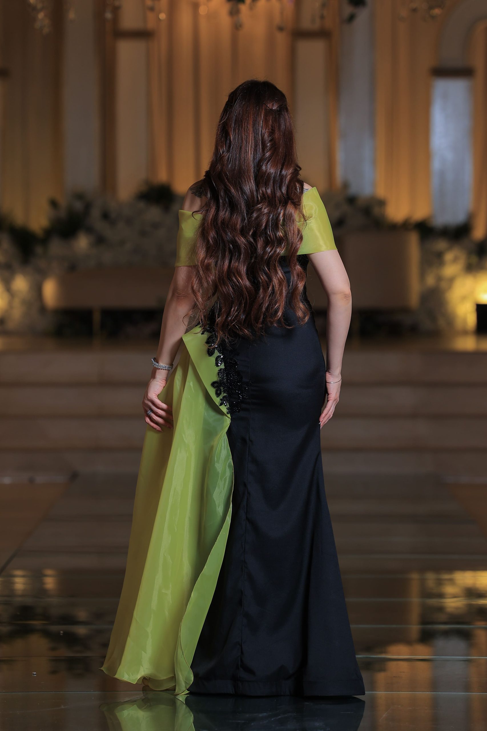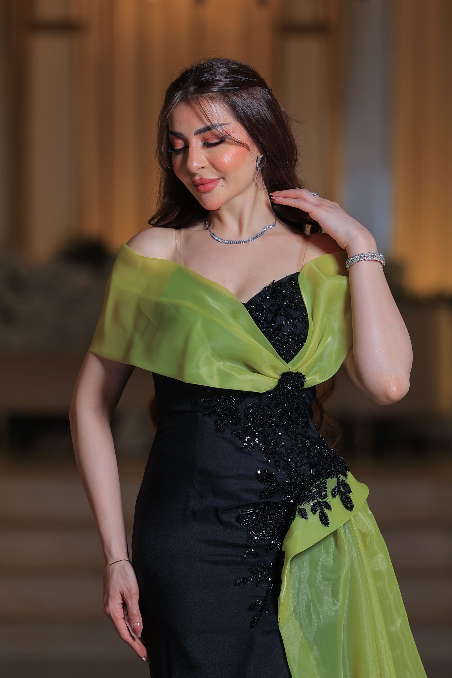 لورا فاشن – فستان لورا الأسود والليموني المطرّز الفخم