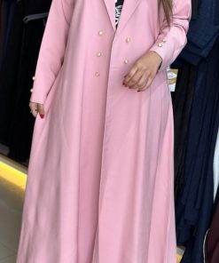 مارينا للعبايات – عباية لون وردي بازرار ذهبيه