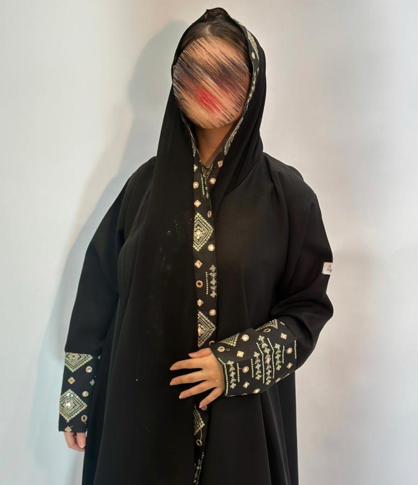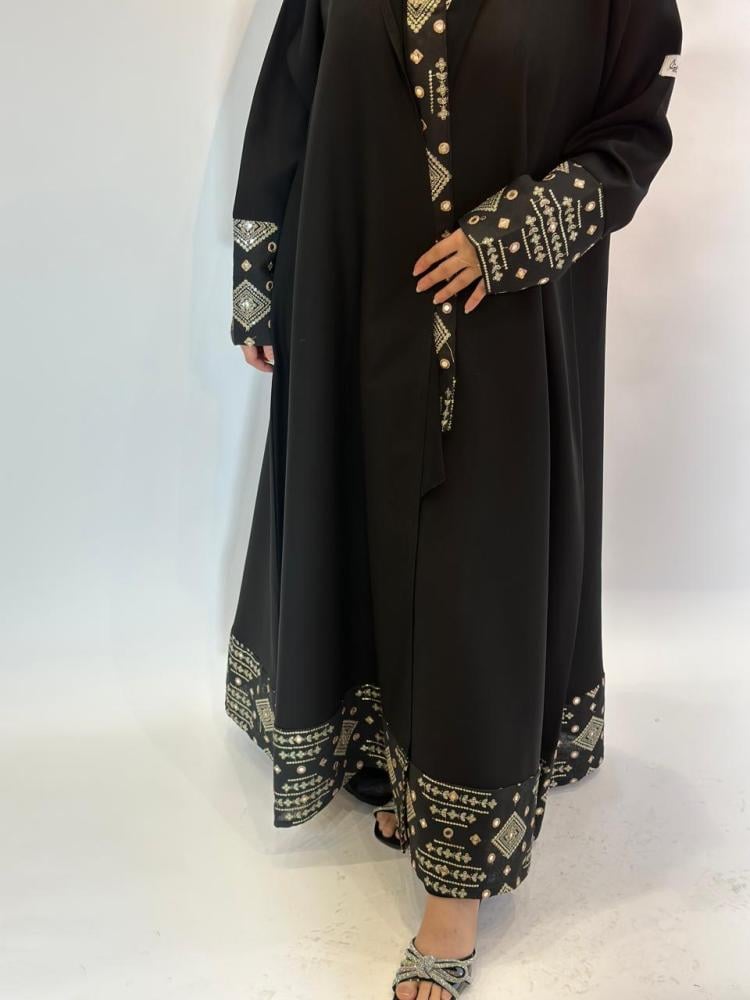 عبايات بيست – عباية عملية بتطريز على الكم باللون الاسود