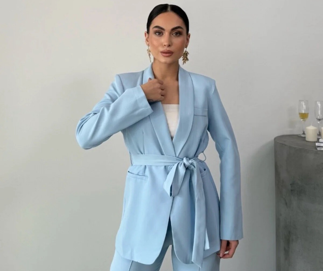 متجر زحل – طقم جاكيت وبنطلون من قماش الكريب الإيطالي الناعم